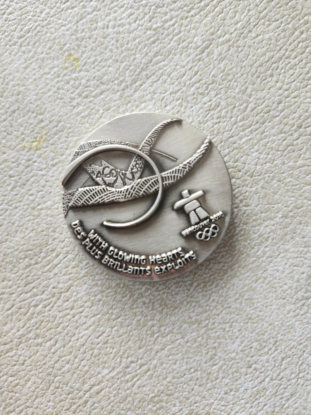 Vancouver 2010 Olympic Winter Games participation medal inspired by Canada's rich natural and cultural diversity. The Host Region's unique Sea to Sky landscape combines with the country's beautiful patterns and textures.