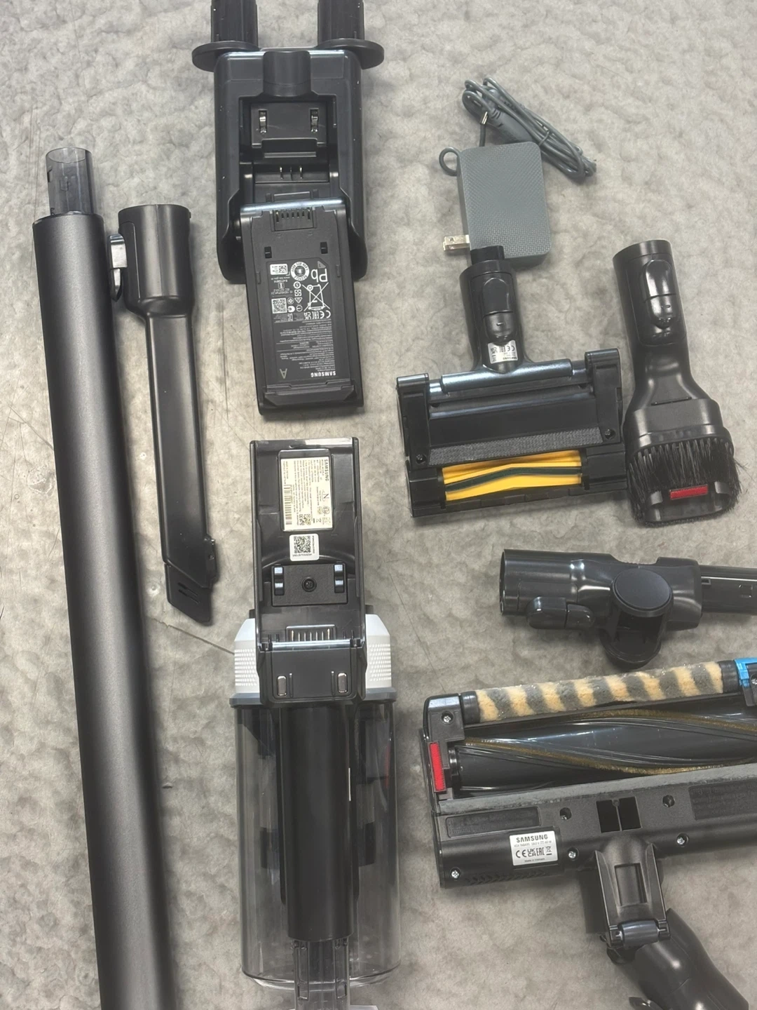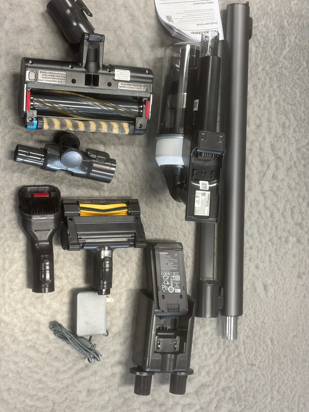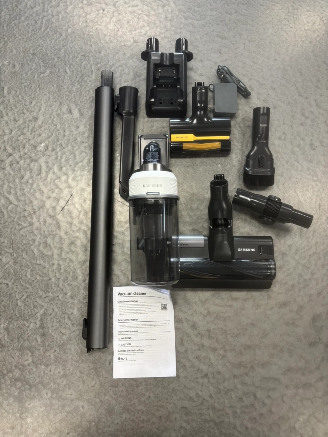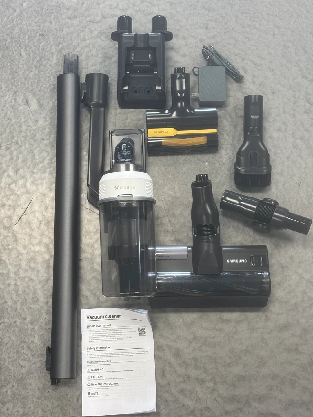 Selling a Samsung cordless stick vacuum. It comes with the Jet Dual Brush and all the attachments shown in the photos. The original listing shows it retailing for $449.99. Great for quick cleanups around the house!