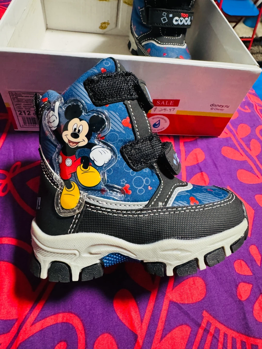 These adorable Disney Mickey Mouse winter boots are perfect for your little one! They feature a fun Mickey Mouse design and are size 20. The boots are in brand new and come with the original box.