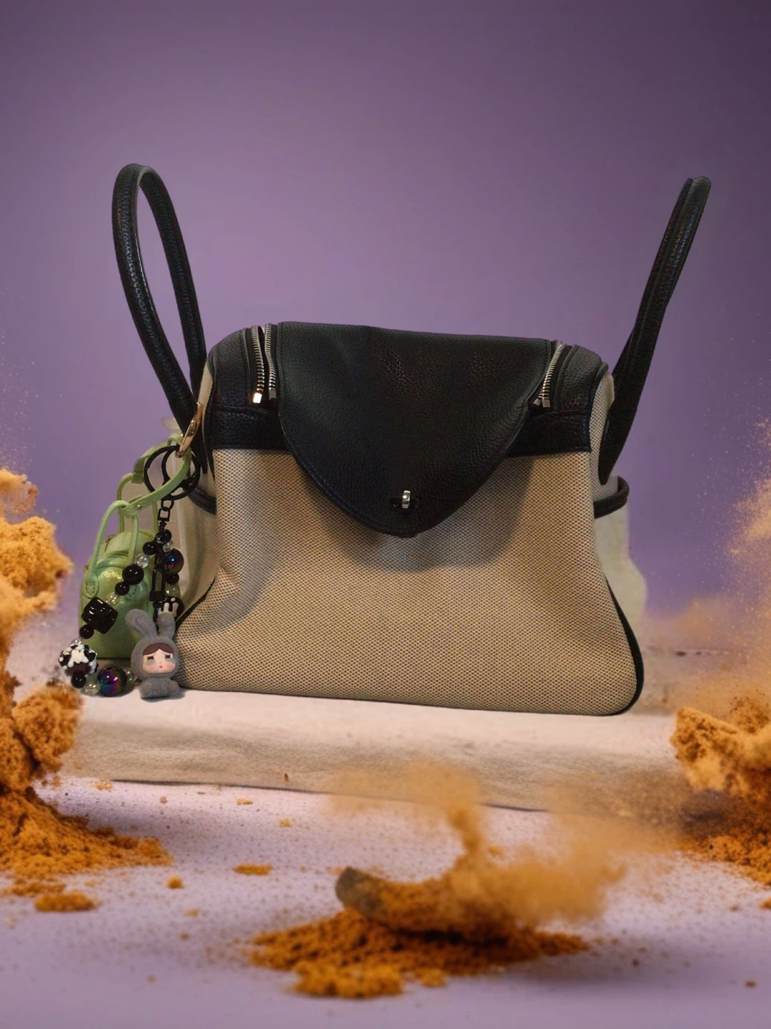 Selling a beautiful Black Zip 31 handbag! This stylish bag features a unique design with a black leather flap and a beige canvas body. Perfect for everyday use and adding a touch of elegance to any outfit