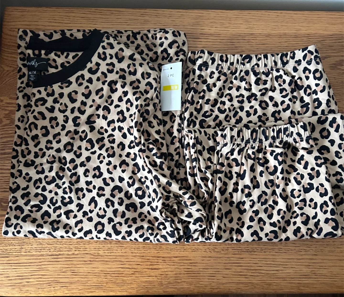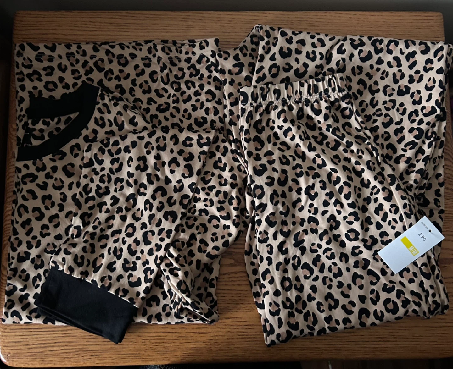 Brand new 4wards pajama set in a fun leopard print! This set includes a comfy top and matching pants, both in size M/M. Perfect for cozy nights in!