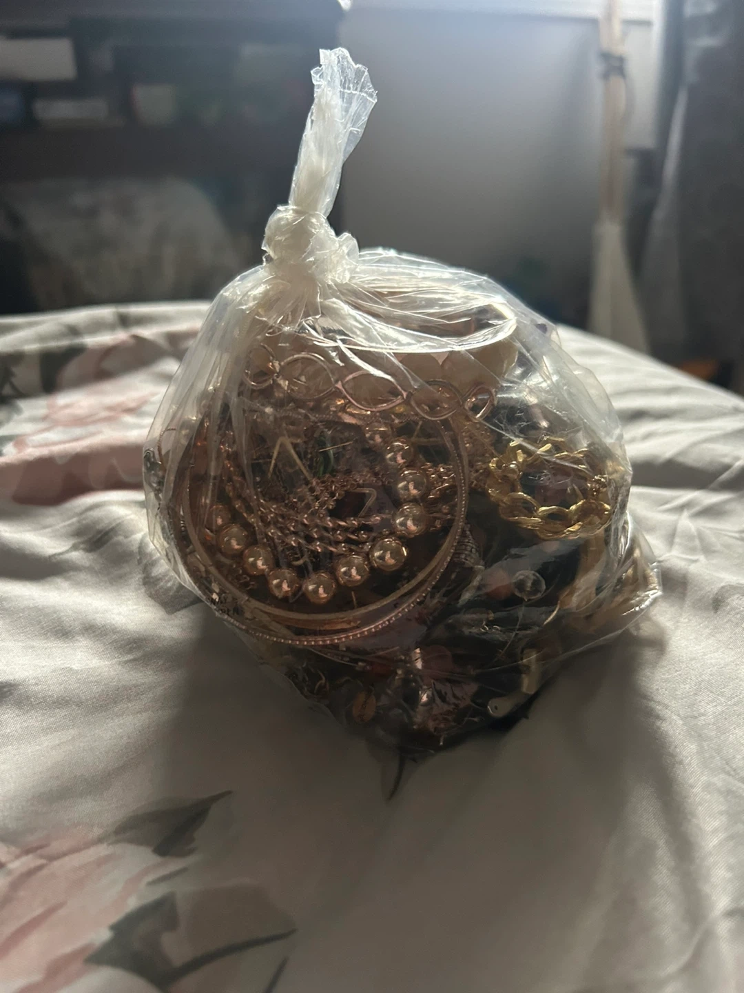 I'm selling a bag of assorted jewelry. It includes rings, bracelets, earrings, and necklaces. Perfect for someone who loves to accessorize! watch’s and some random pieces:) as is! bought for 30