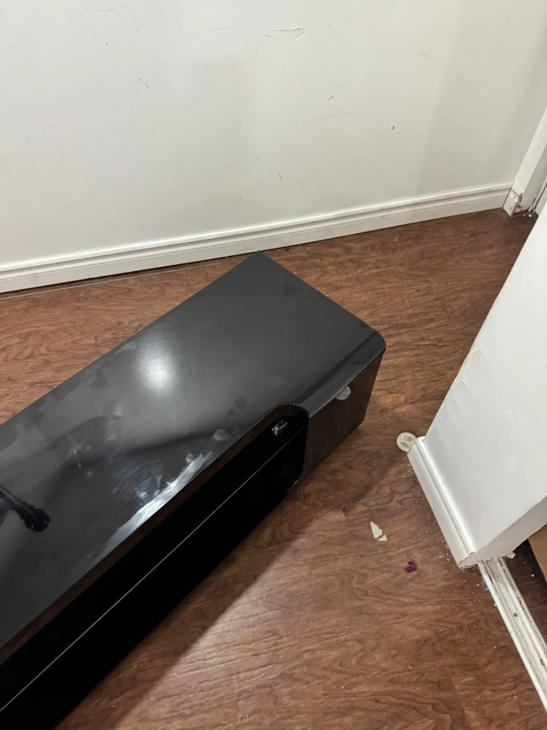 Selling a sleek black TV stand! It features a glass shelf for your media devices or decor. It's in good condition and ready to find a new home in your living room.