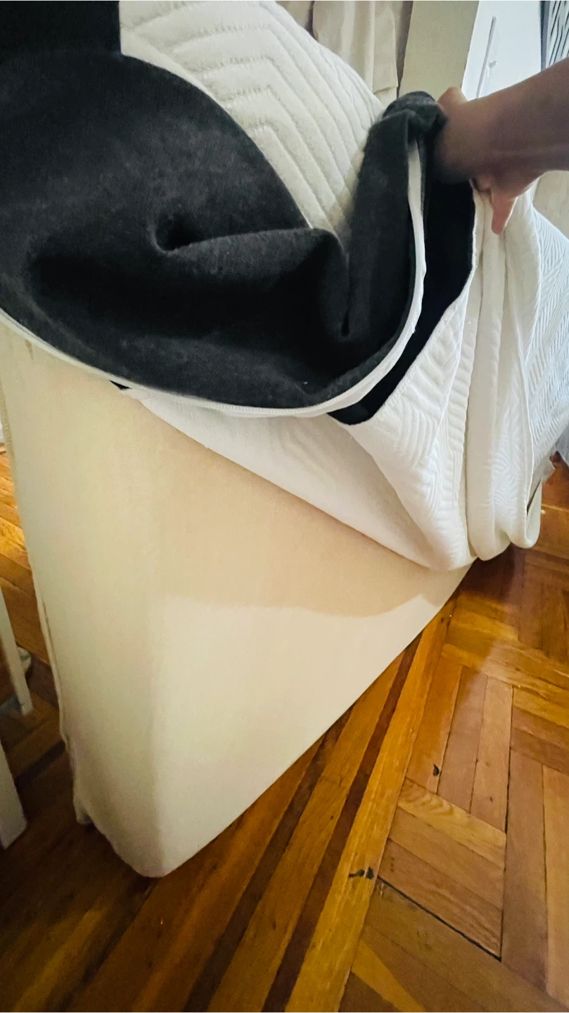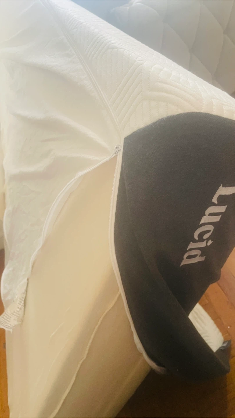 Selling a Lucid memory foam mattress. It's in good condition and ready for a new home! The mattress features a unique geometric pattern on the top and a convenient zipper along the edge