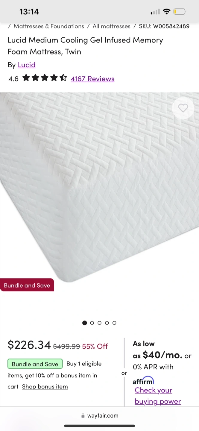 Lucid Memory Foam Mattress Twin( Moving Out)