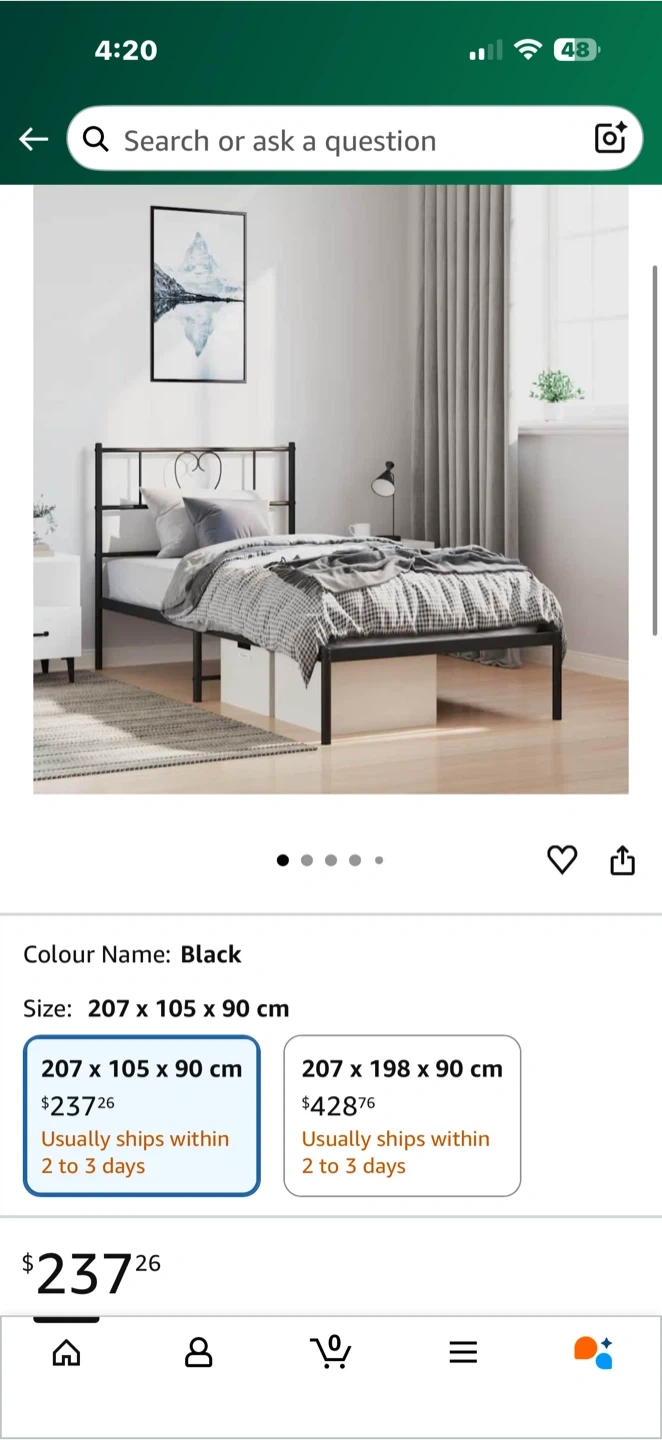 Selling a black metal bed frame with 6 Inch Spring Mattress in good condition.
