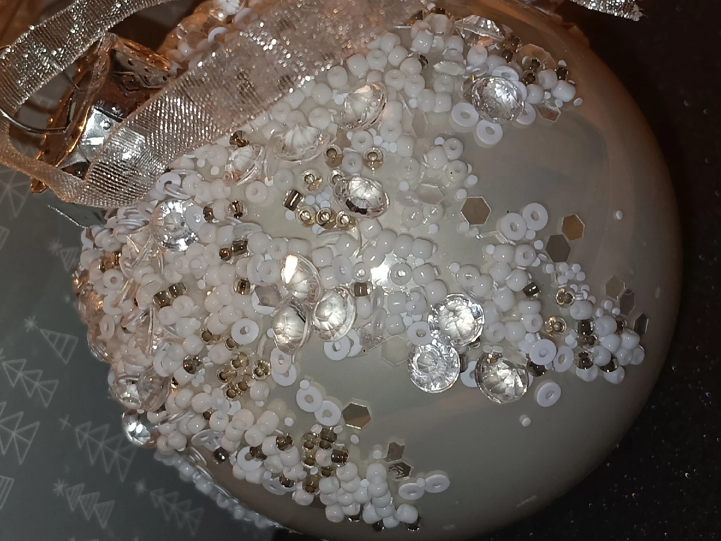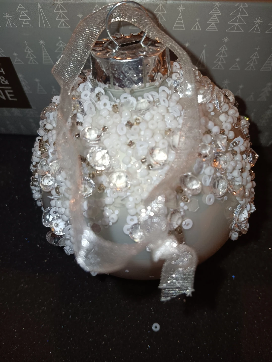 Selling a set of four glass ornaments from 34th & Pine. They're beautifully decorated with beads and gems, adding a touch of elegance to your holiday decor. Perfect for your Christmas tree or as a festive accent around the house!
