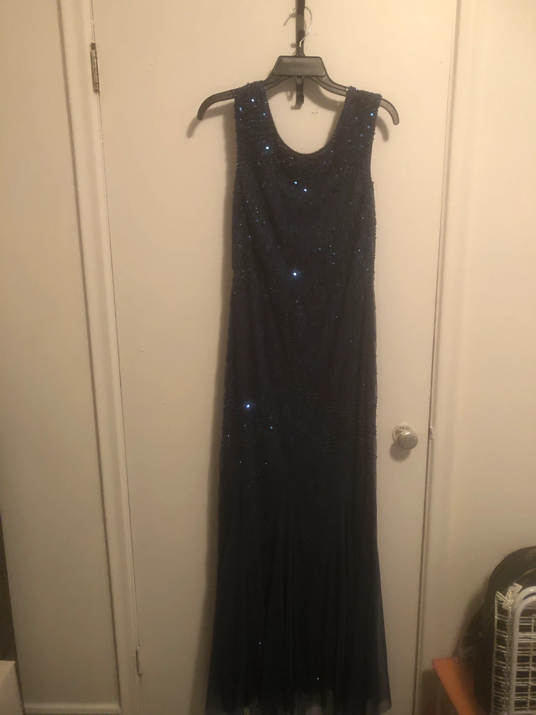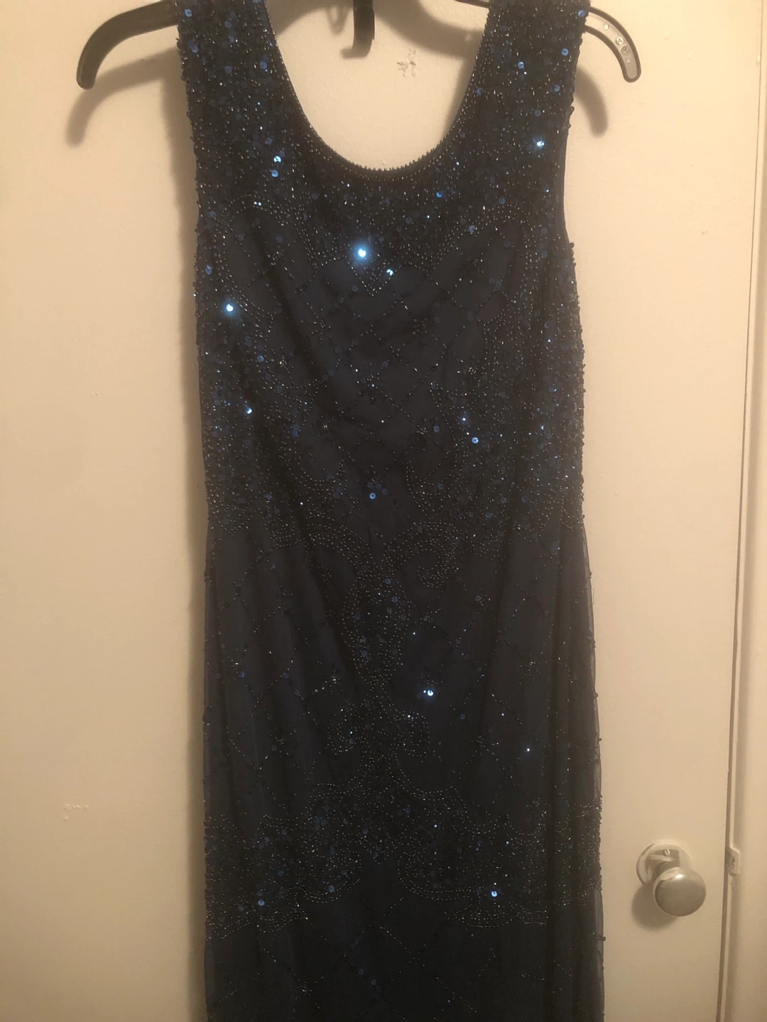 Selling a beautiful navy blue dress from David's Bridal! It's fully beaded and comes with the garment bag, so it's ready to go for your special occasion