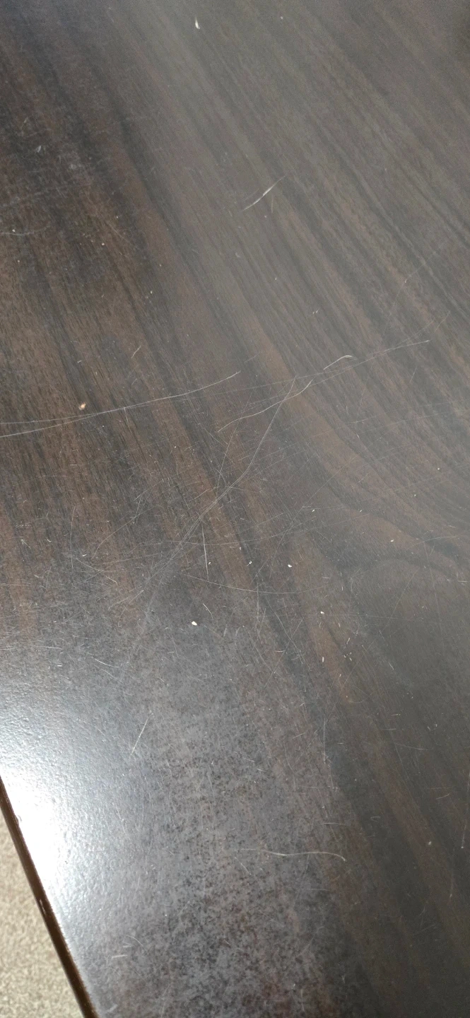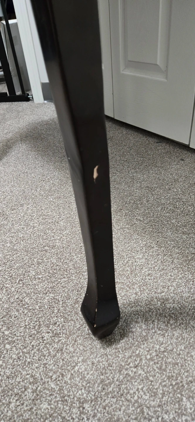 As you can see in the photos it has some knicks and marks from moving. Those should be very easy to cover up if you're willing to repaint or place a table cloth overtop.