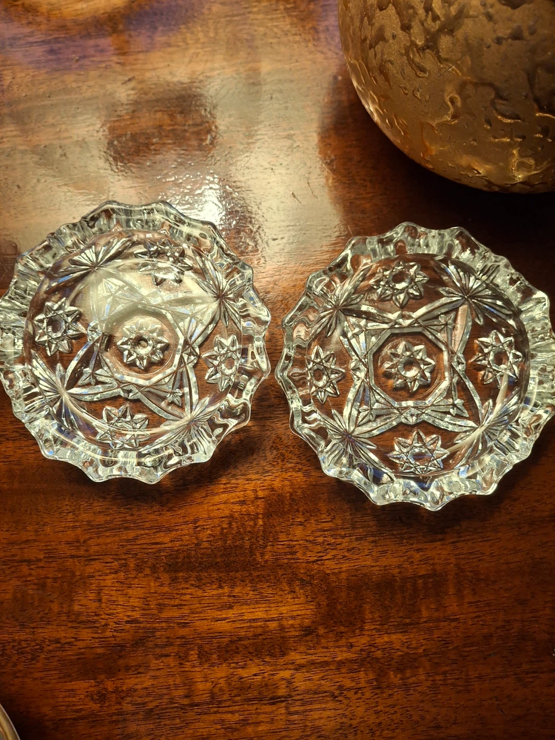 Pair of vintage ash trays with intricate design. 4” across. Perfect condition.