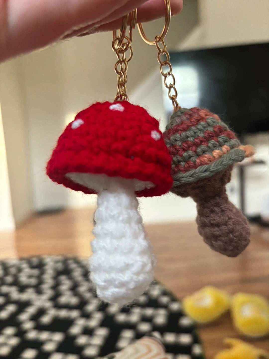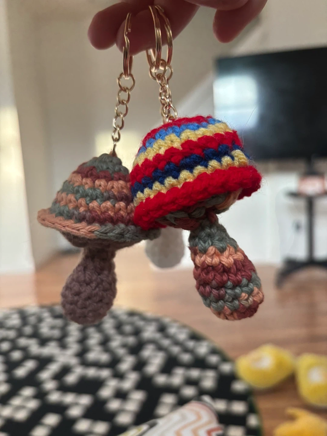 Selling these adorable handmade crochet mushroom keychains! They're perfect for adding a touch of whimsy to your keys, backpack, or purse. Each one is unique and carefully crafted with love!