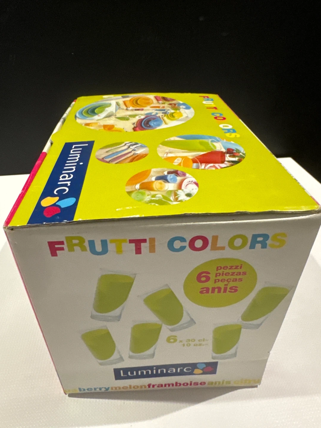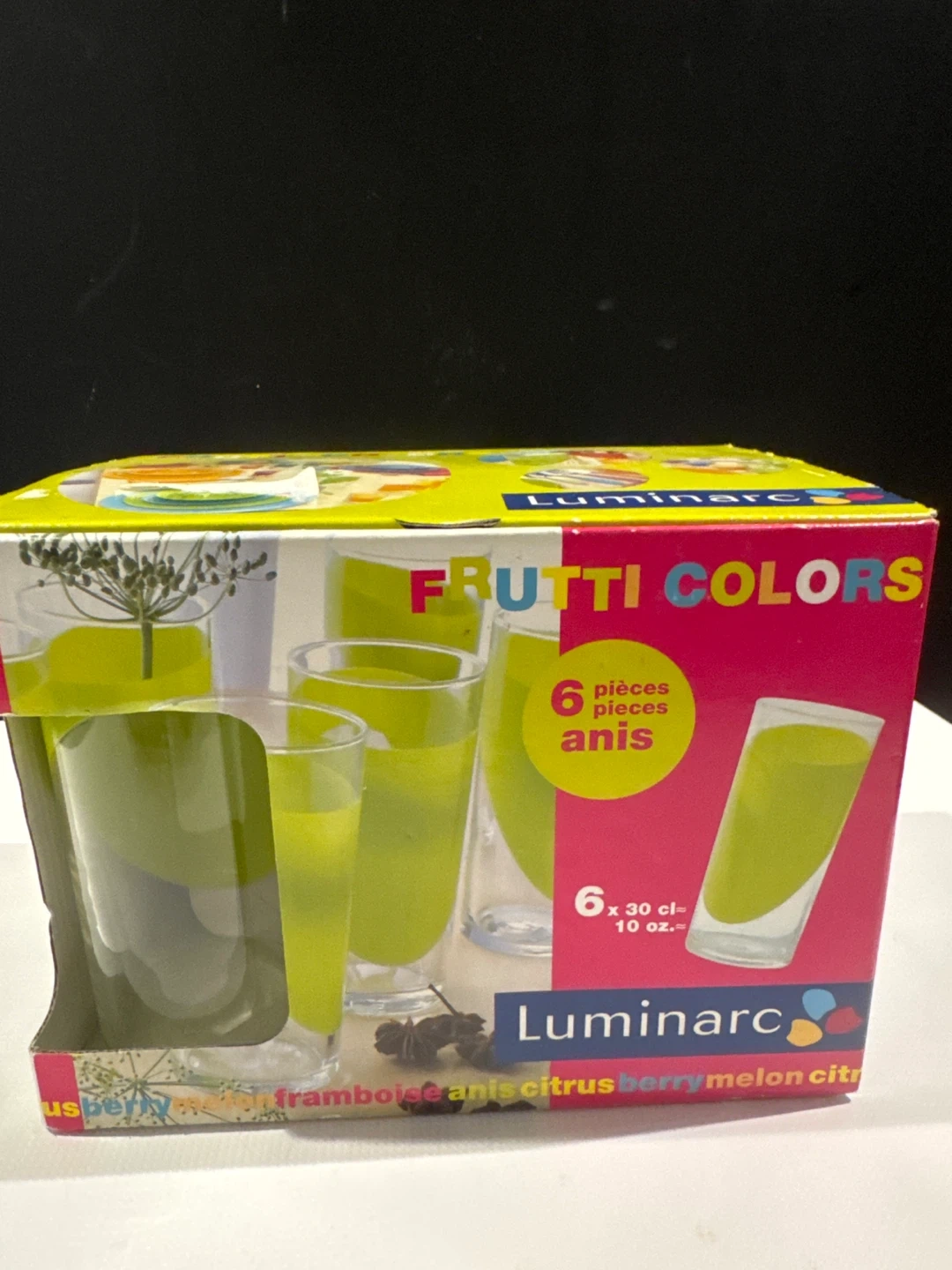 65Selling a Luminarc Frutti Colors shot glass set! This set includes 6 glasses in a vibrant green colour, perfect for adding a pop of colour to your barware collection. The glasses are in excellent condition and come in their original box. Each glass holds 30 cl (10 oz).