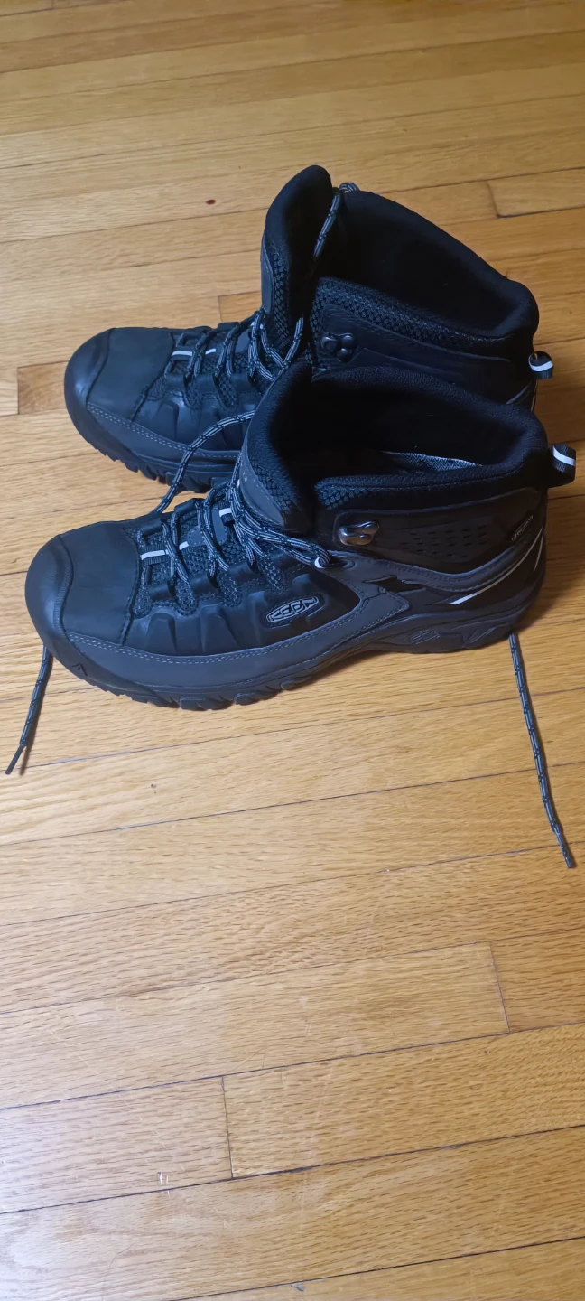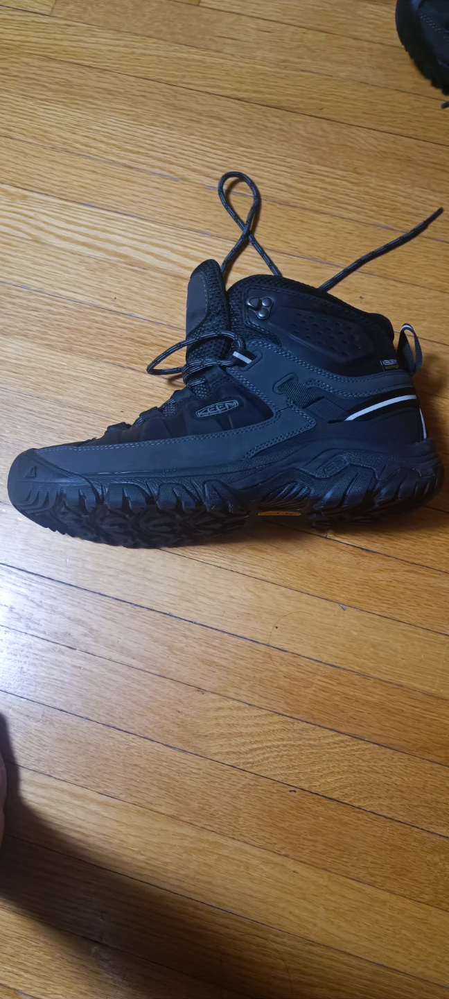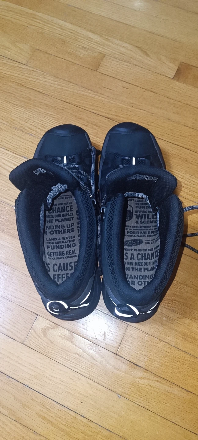 Selling a pair of KEEN Men's Targhee III Waterproof Mid Leather Hiking Boots in triple black. These boots are great for hiking and outdoor activities. They are waterproof to keep your feet dry and comfortable on the trails. New unused, no box