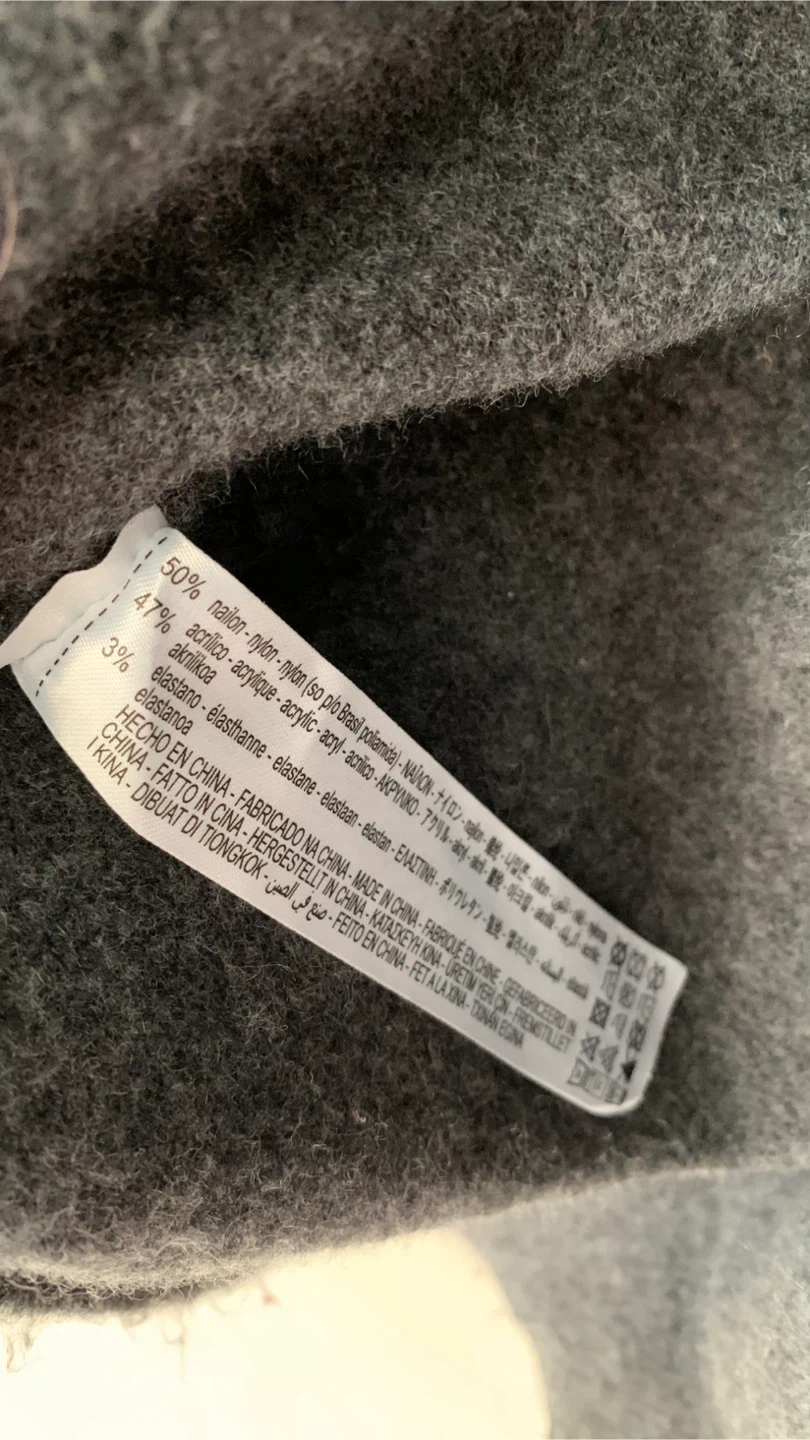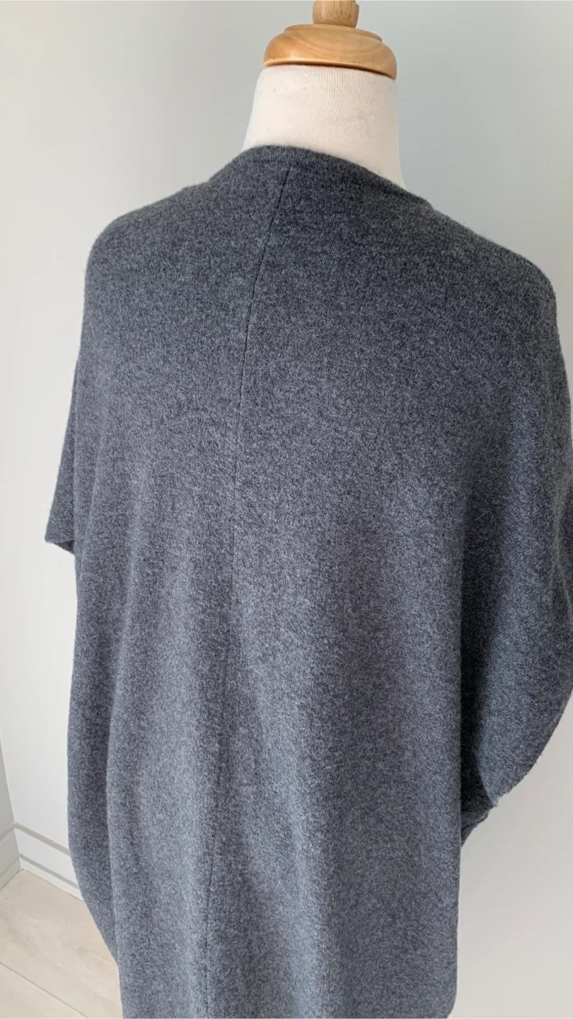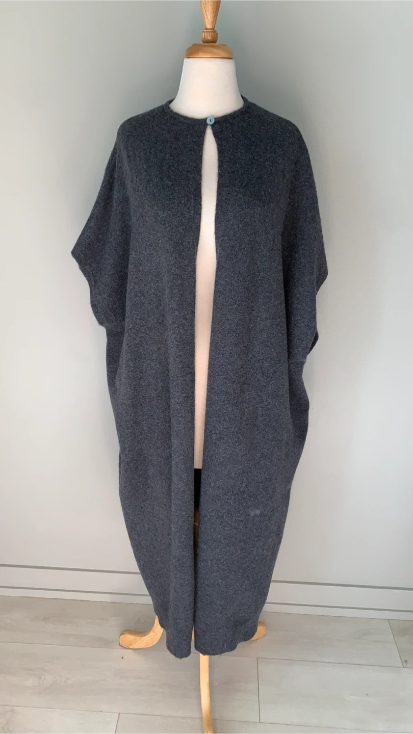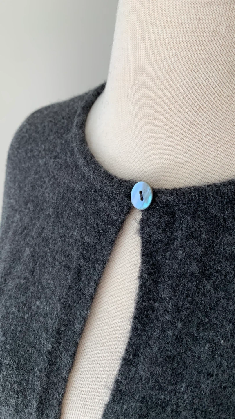 Cozy grey wool like cardigan with a unique abalone shell button detail! It's in brand new condition and perfect for layering on those chilly days. The material feels soft and warm, making it a comfy addition to any wardrobe.