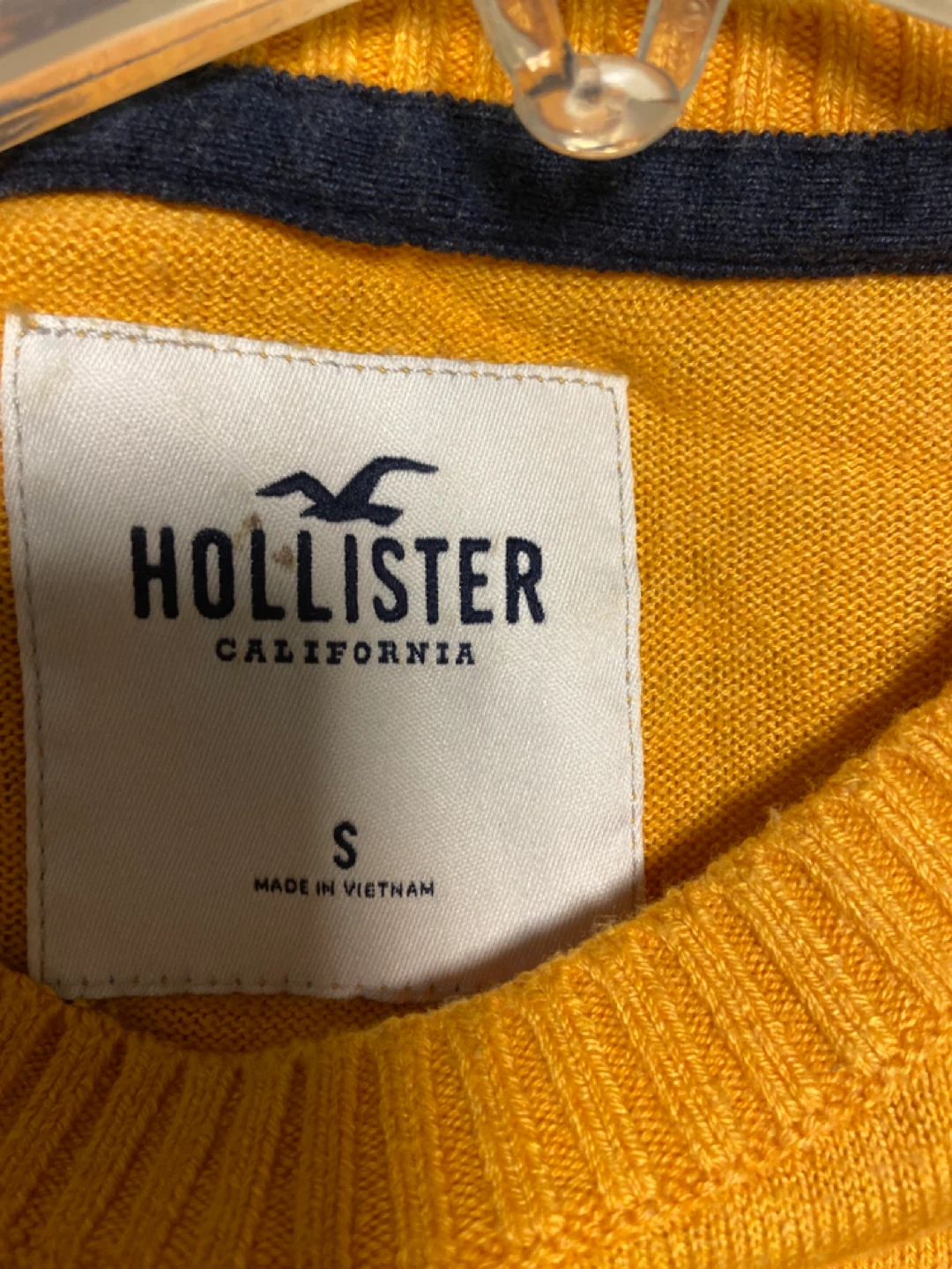 This is a Hollister California sweater in a vibrant yellow colour. It's a size small and in great condition. Perfect for adding a pop of colour to your wardrobe!