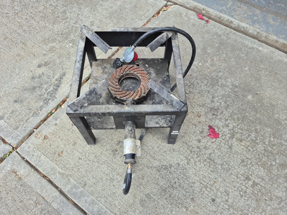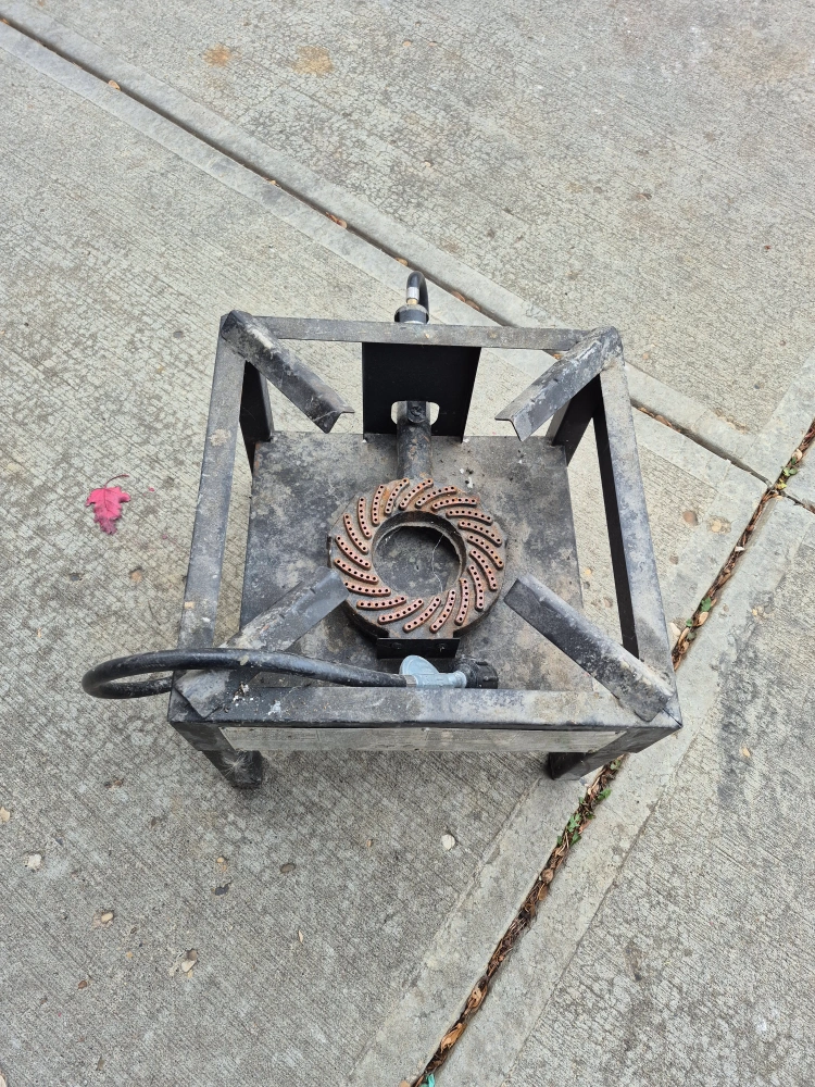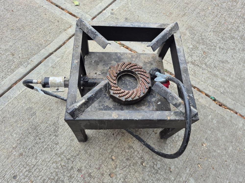 Selling a used outdoor burner stove. It shows signs of wear and use, but it's still functional. Great for outdoor cooking or brewing!