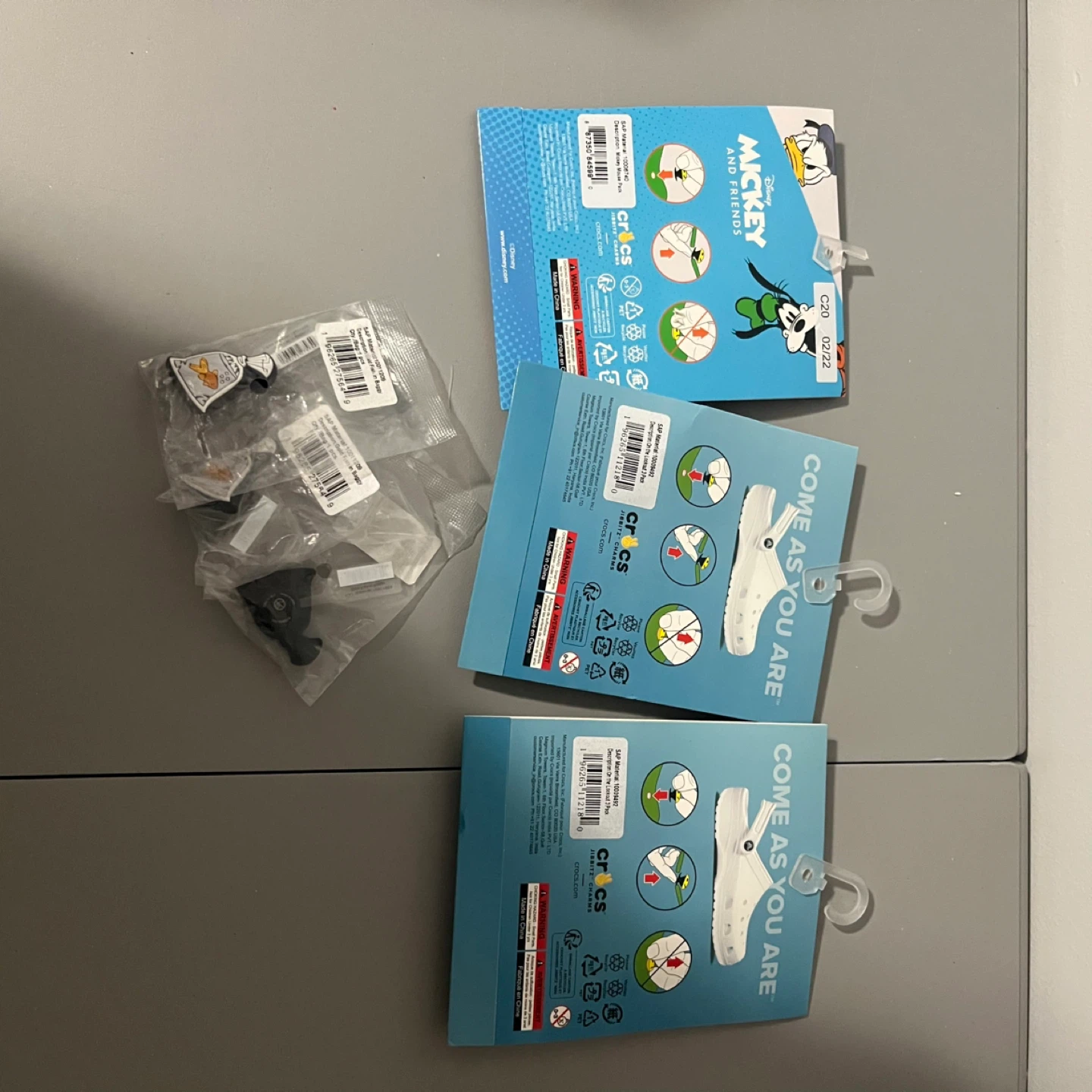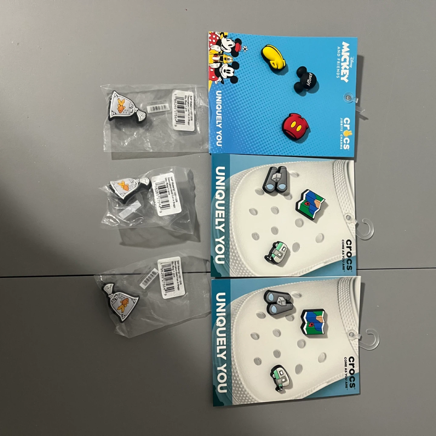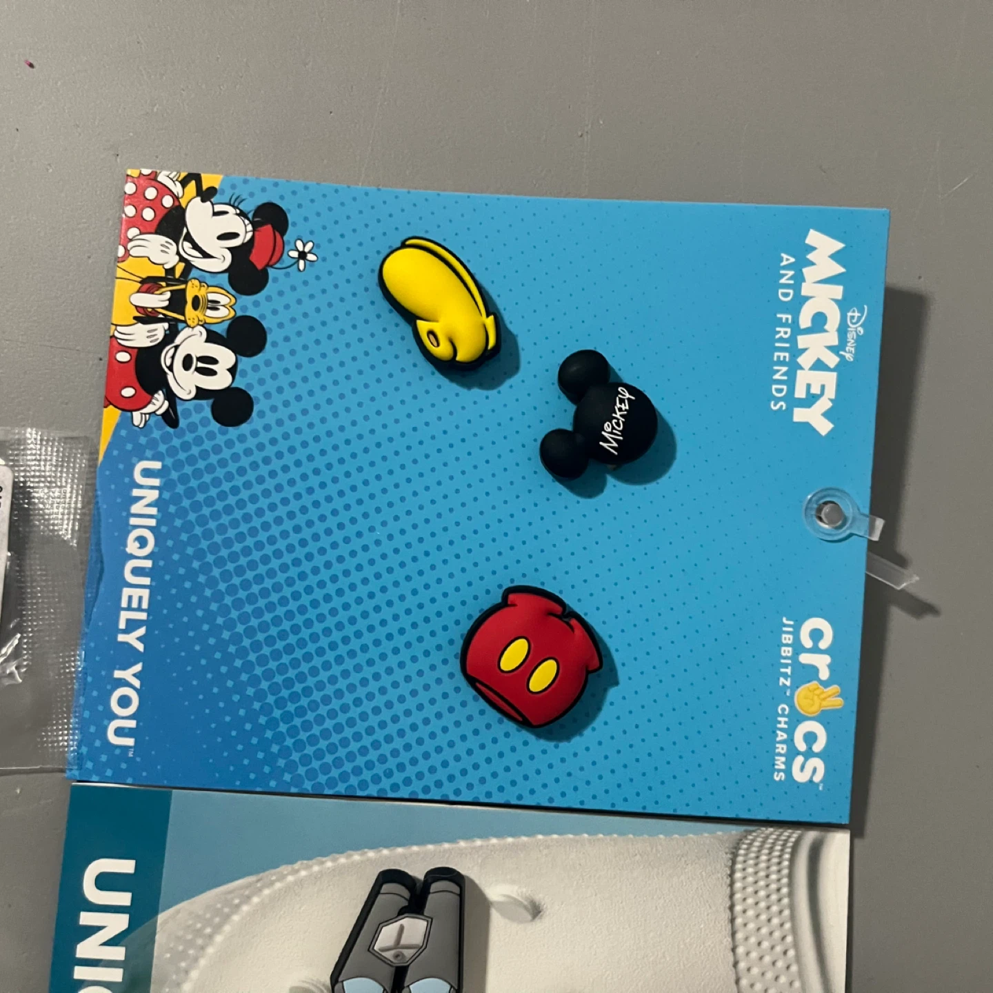 I have some new Crocs Jibbitz charms for sale! There are Mickey and Friends charms, and other unique designs available. They're perfect for adding some personality to your Crocs
