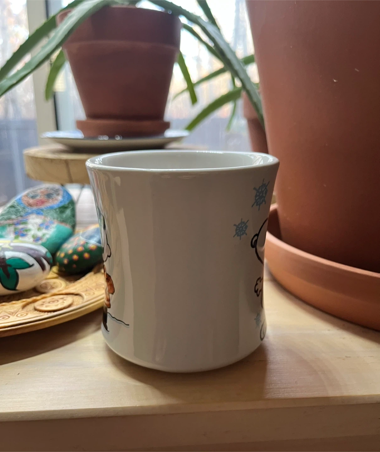 Here's a cute Peanuts mug featuring Charlie Brown and Snoopy! It's a Vandor mug, perfect for adding some holiday cheer to your morning coffee or tea.