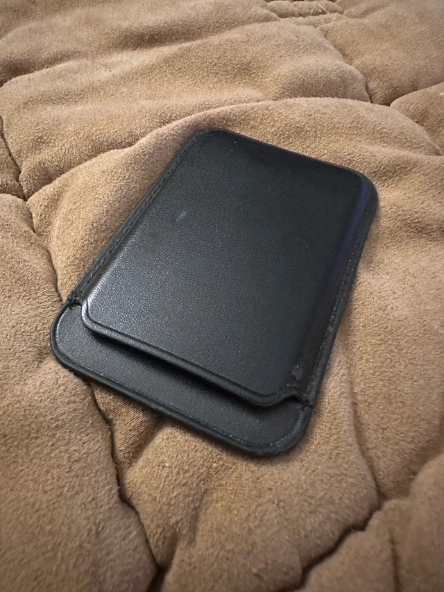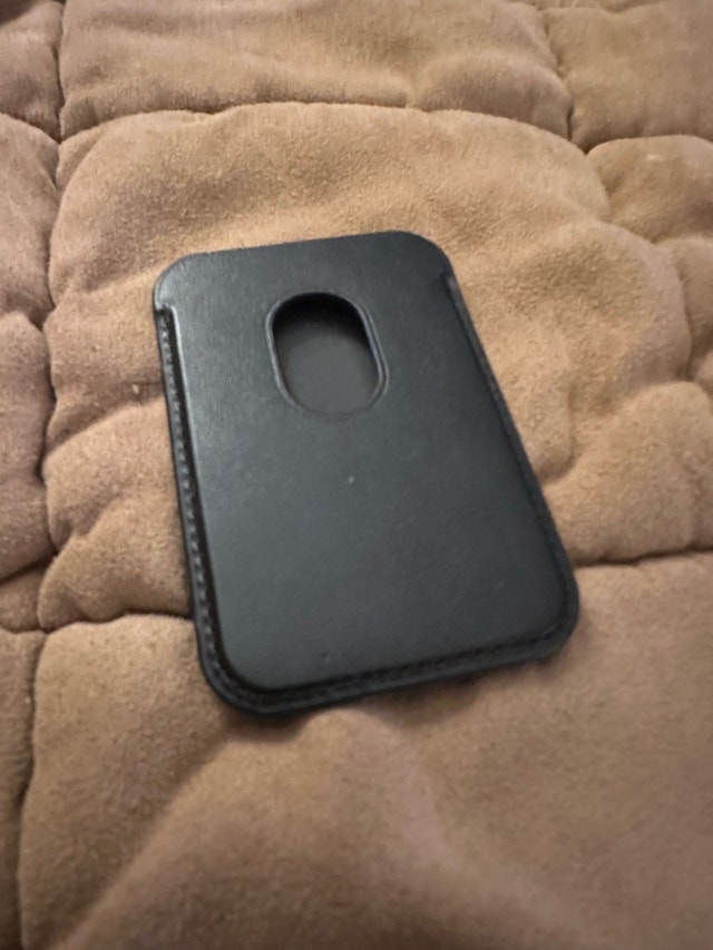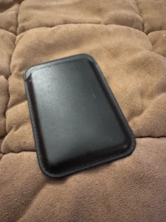 Keep your essential cards close at hand with this used Apple MagSafe Wallet, designed to securely attach to the back of your iPhone with its built-in magnets. This wallet is crafted from high-quality leather and can hold up to three cards, combining convenience and style. This wallet has been great, making it easy to carry my ID and debit card, but I recently upgraded my phone and no longer need it. If the ad is up, it's still available!