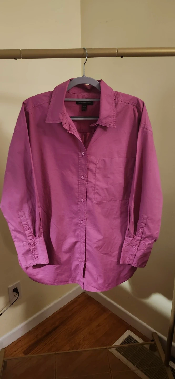 81Selling a Banana Republic button-up shirt in a lovely shade of pink! It's a size M and made in Bangladesh. Perfect for a casual or dressed-up look