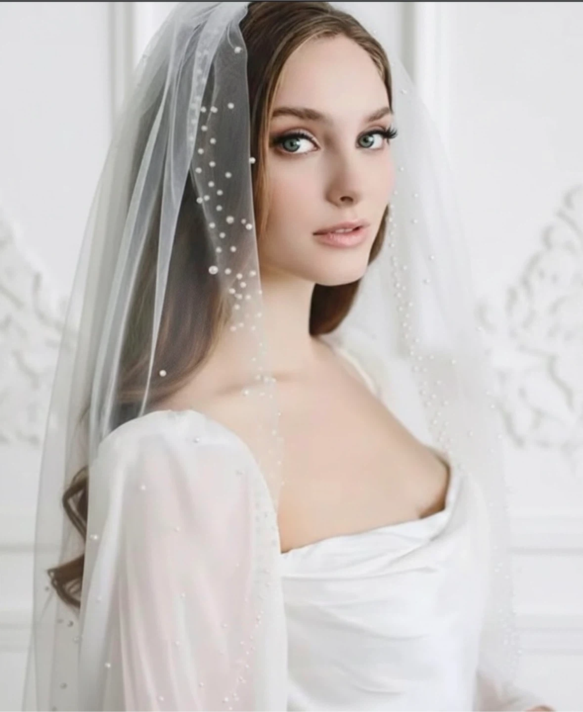 Wedding Veil with Pearls - Bridal Accessory
