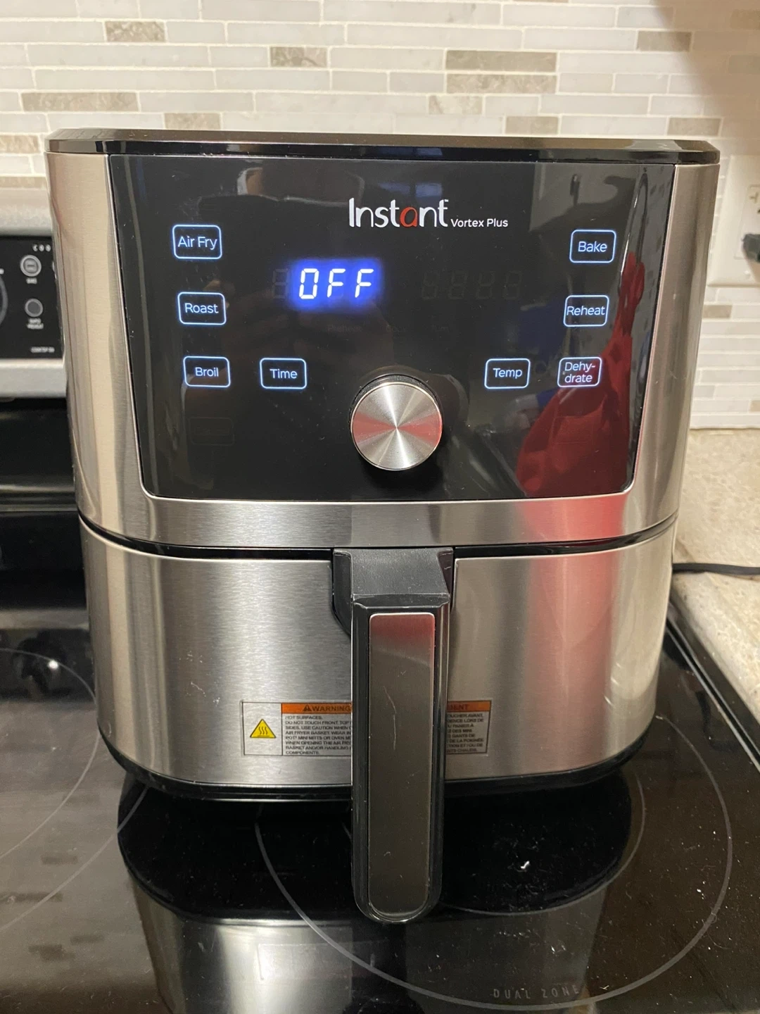 I'm selling an Instant Vortex Plus air fryer! This convection air fryer has 6 built-in smart programs. It can air fry, roast, broil, bake, reheat, and dehydrate. The EvenCrisp technology promotes crispy results with 95% less oil. Box included