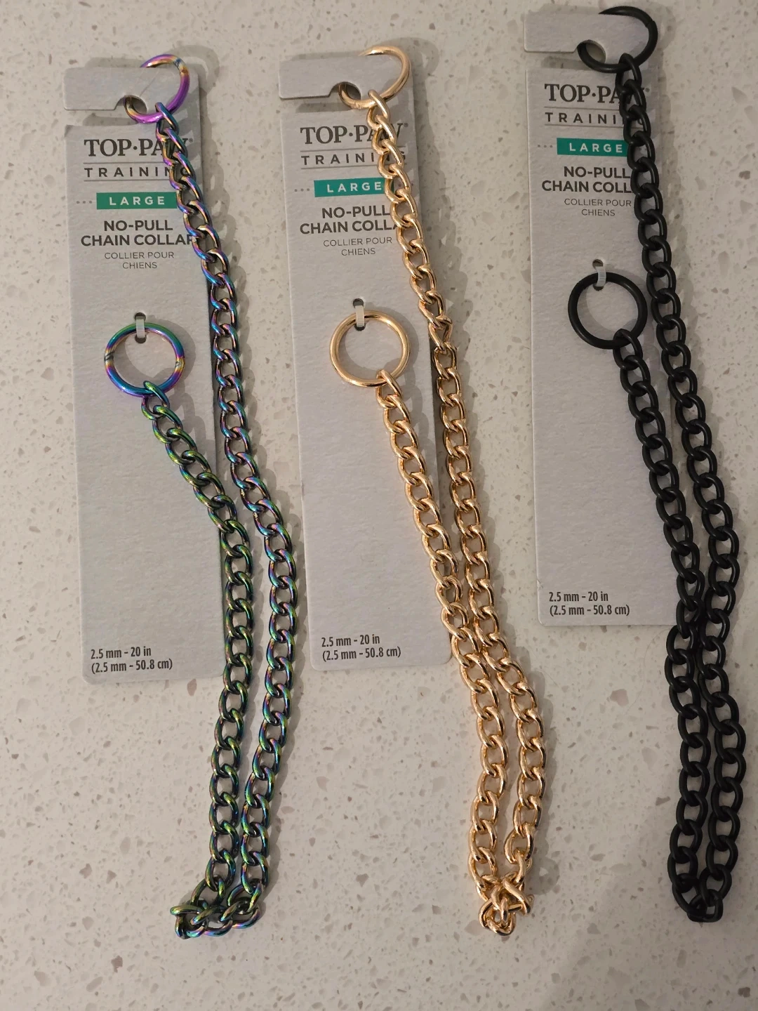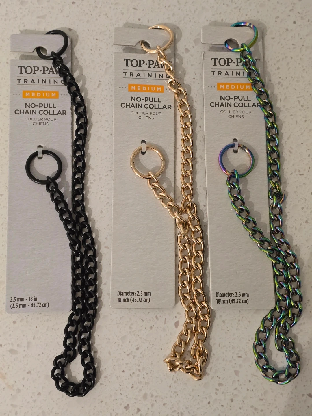 I'm selling a Top Paw Training No-Pull Chain Collar. Available in several sizes.