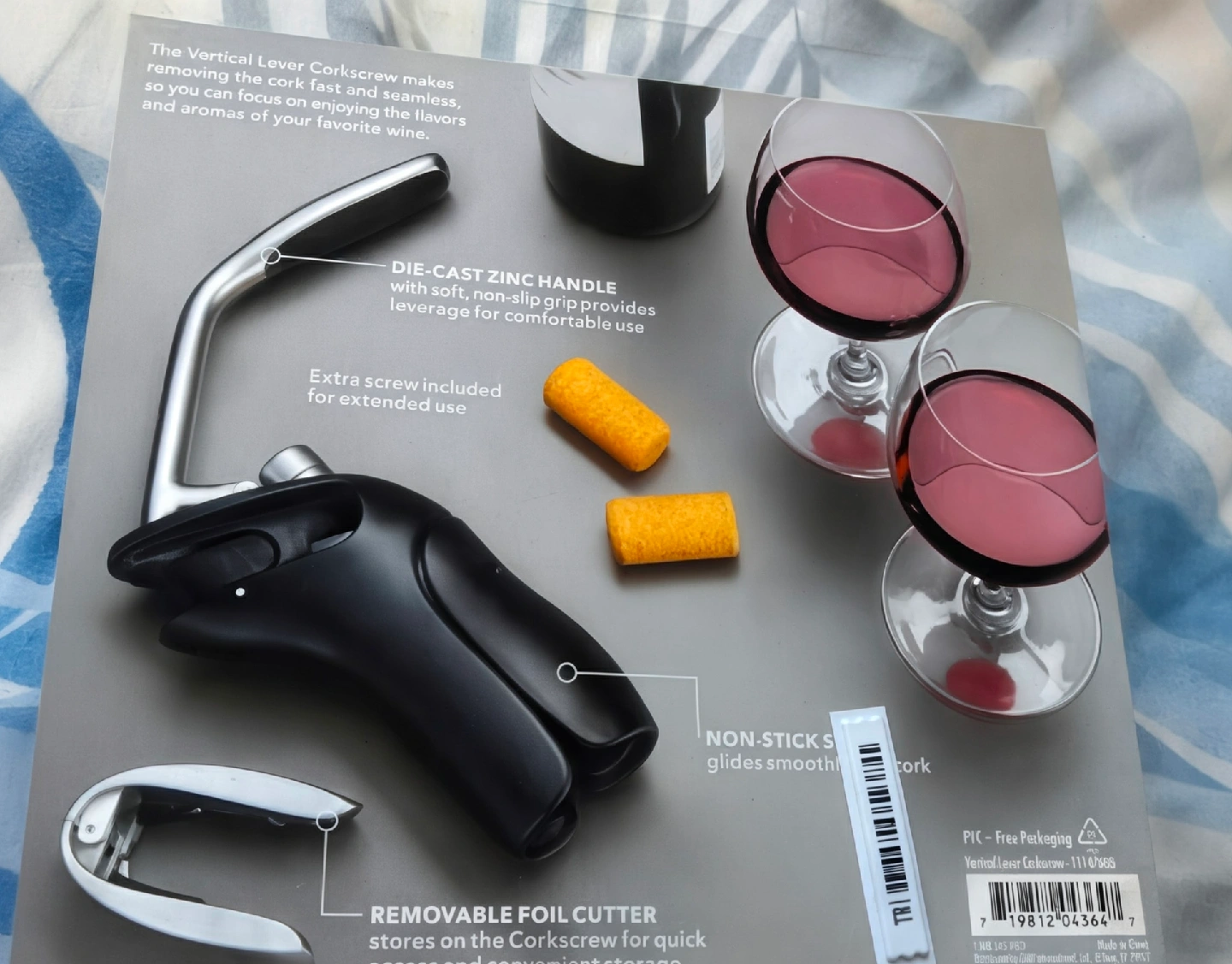 -Removable foil cutter stores on the corkscrew for quick access and convenient storage