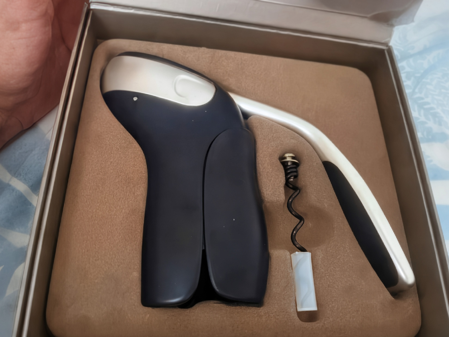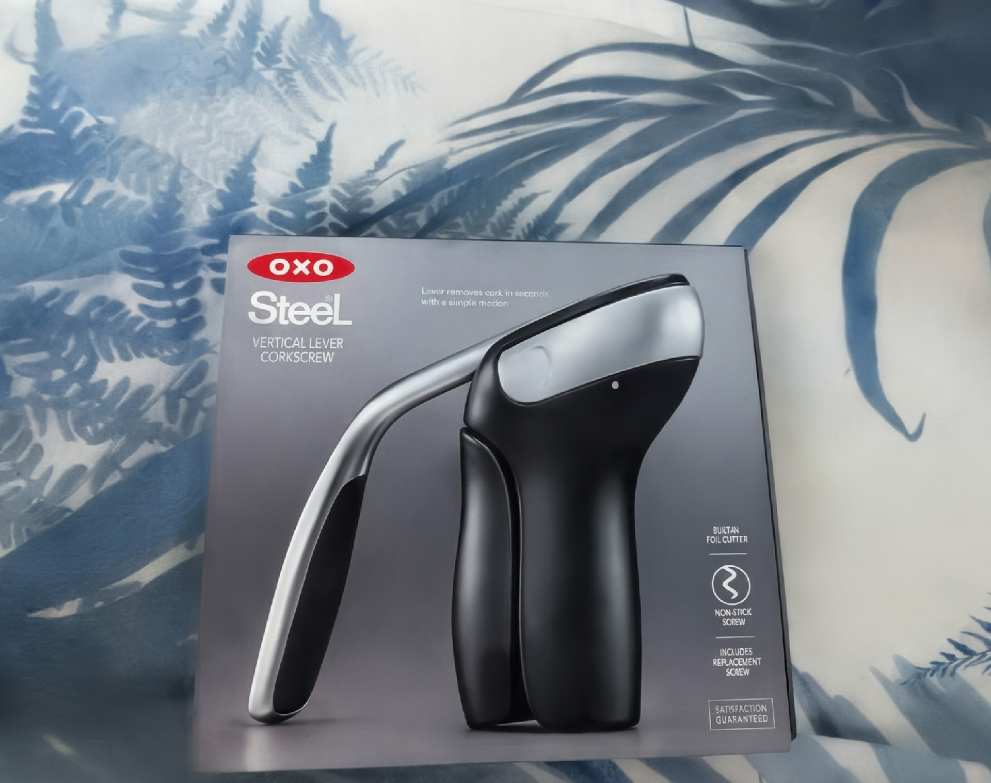 It also includes a built-in foil cutter, non-stick screw, and replacement screw, and satisfaction is guaranteed! The box is included as well