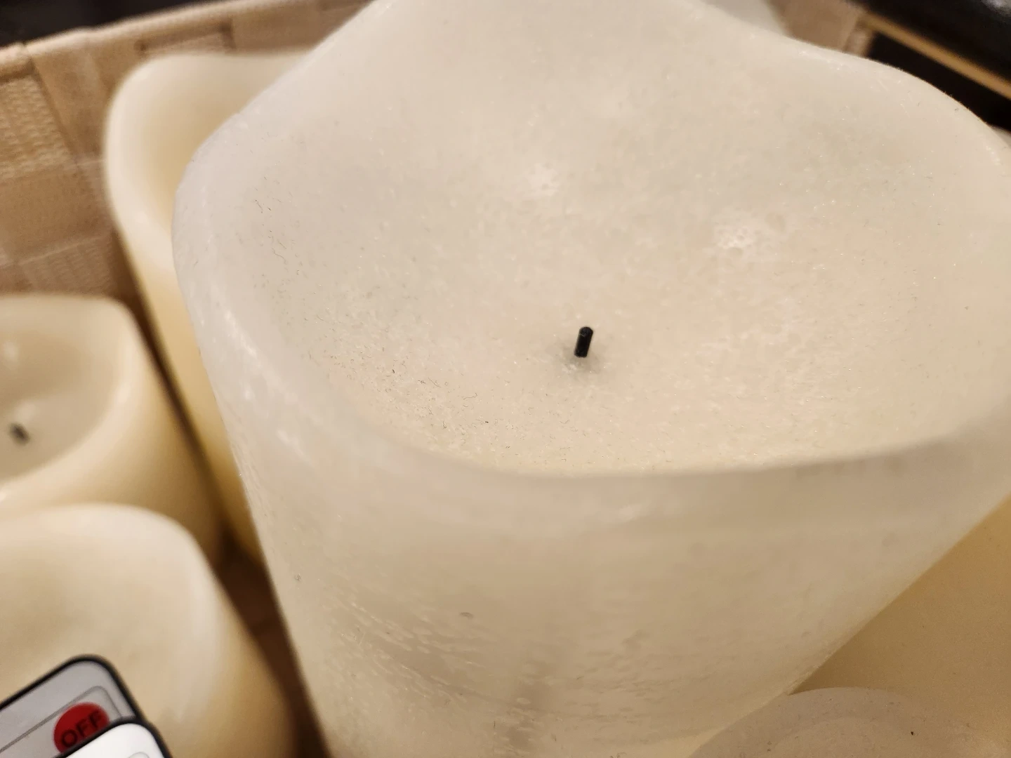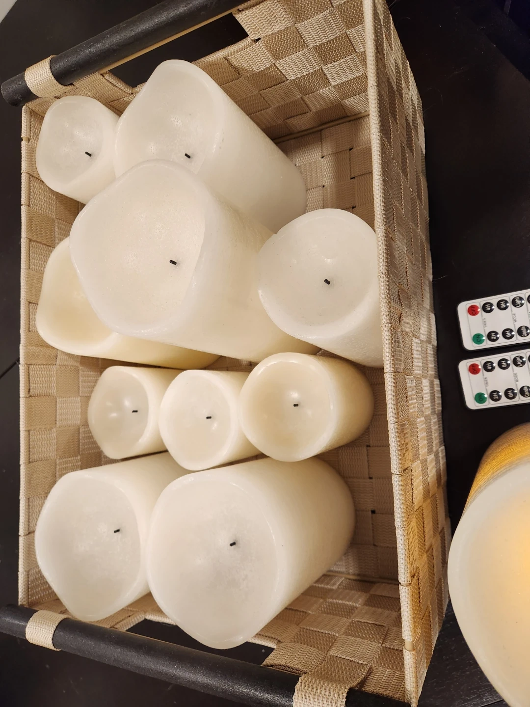 Selling a set of Pier 1 Imports LED wax candles. They come with two remotes for easy control. Perfect for creating a cozy atmosphere in your home! No batteries included but all work. Can be on solid or flickering light, and the remotes can set timers. White and off white colours but similar it's hard to tell the difference. Will include basket. Cash only