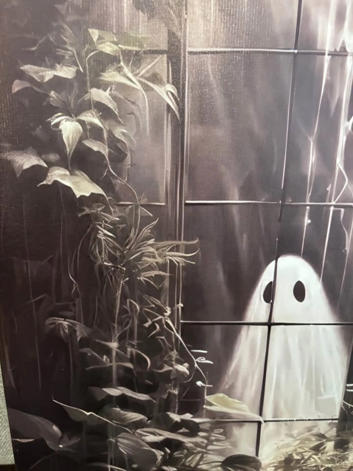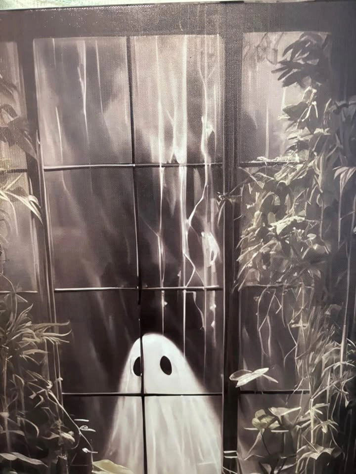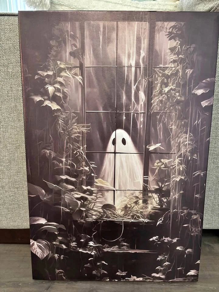 Brand new greenhouse ghost print on canvas. Framed by me onto 23.6”X15.7”X1.5” wooden frame. Super cute with a vintage vibe to it.