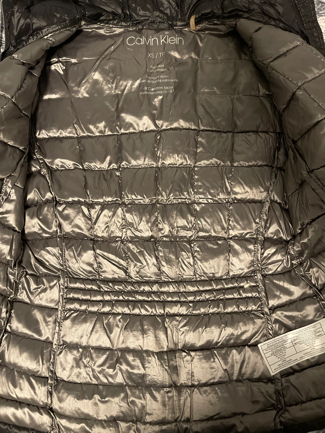 Selling a Calvin Klein packable and compressible premium down puffer jacket. It's a Women’s size XS and has a -9°C warmth factor. Great for staying cozy!