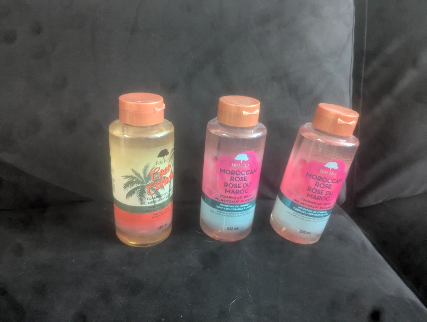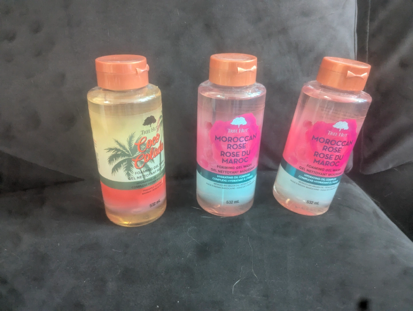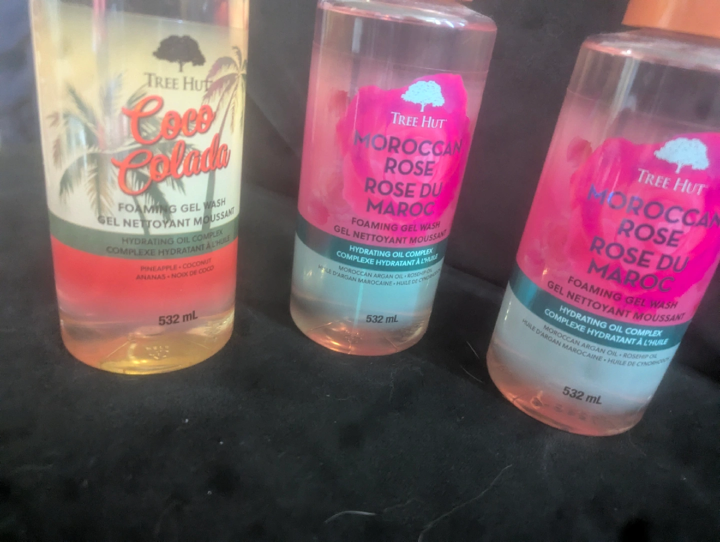 Selling these Tree Hut foaming gel washes! One is Coco Colada and the other is Moroccan Rose. Each bottle contains 532 mL of product