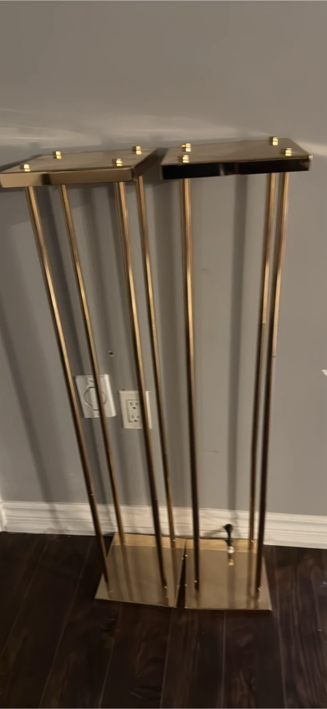 71Selling a set of two gold floor floral stands. They're in great shape and would add a touch of elegance to any room. Have 2 additional brand new stands in box for $35. Total of 4 stands available.