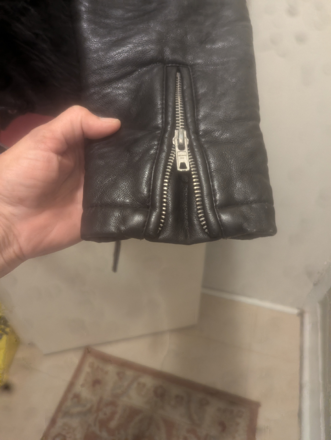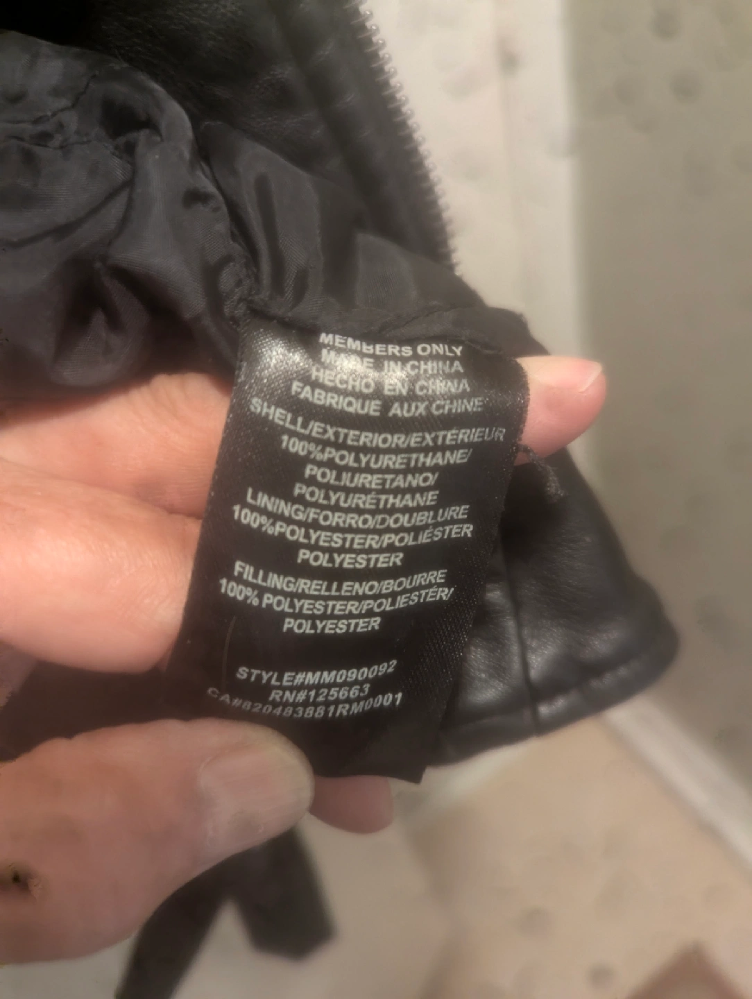 Here's a Members Only jacket in black! The shell is made of 100% polyurethane, and the lining and filling are 100% polyester. It's a stylish jacket that's sure to keep you warm.