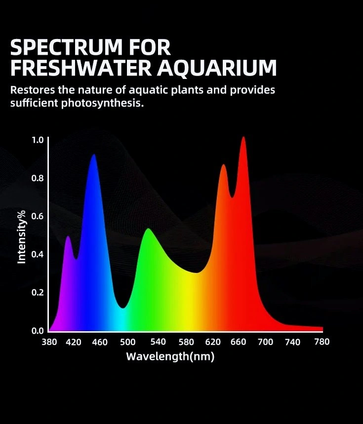 Spectrum designed for freshwater aquarium restores the nature of aquatic plants and provides sufficient photosynthesis.