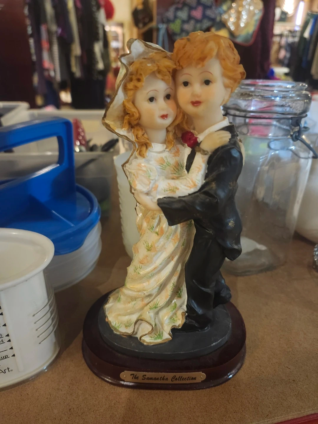 This is a lovely figurine from The Samantha Collection. It features a bride and groom in a sweet embrace. It would be a great addition to any collection or as a decorative piece for your home