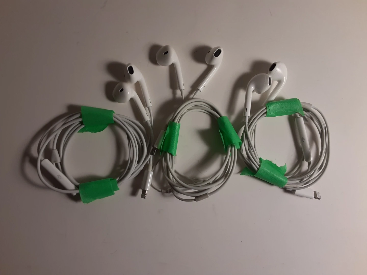 SOLD TOGETHER - 3 pairs of used white Apple EarPods with lightning connector. They have all been thoroughly cleaned/sanitized and tested to ensure they all in working order. Perfect if you need a spare pair... or three!