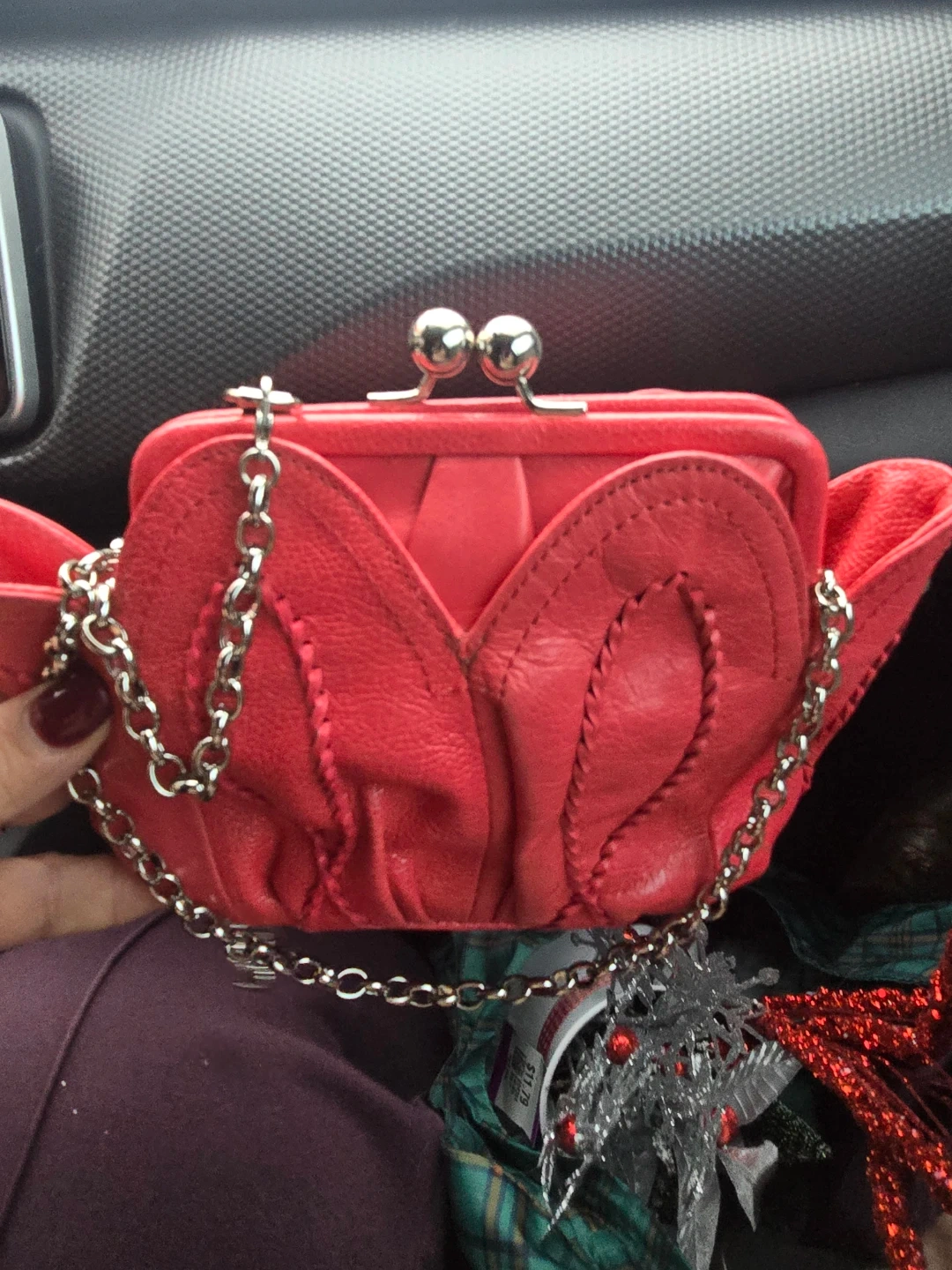 Selling a cute Hobo red leather kisslock shoulder bag! It's in great condition and perfect for adding a pop of colour to any outfit. The kisslock closure adds a touch of vintage charm!