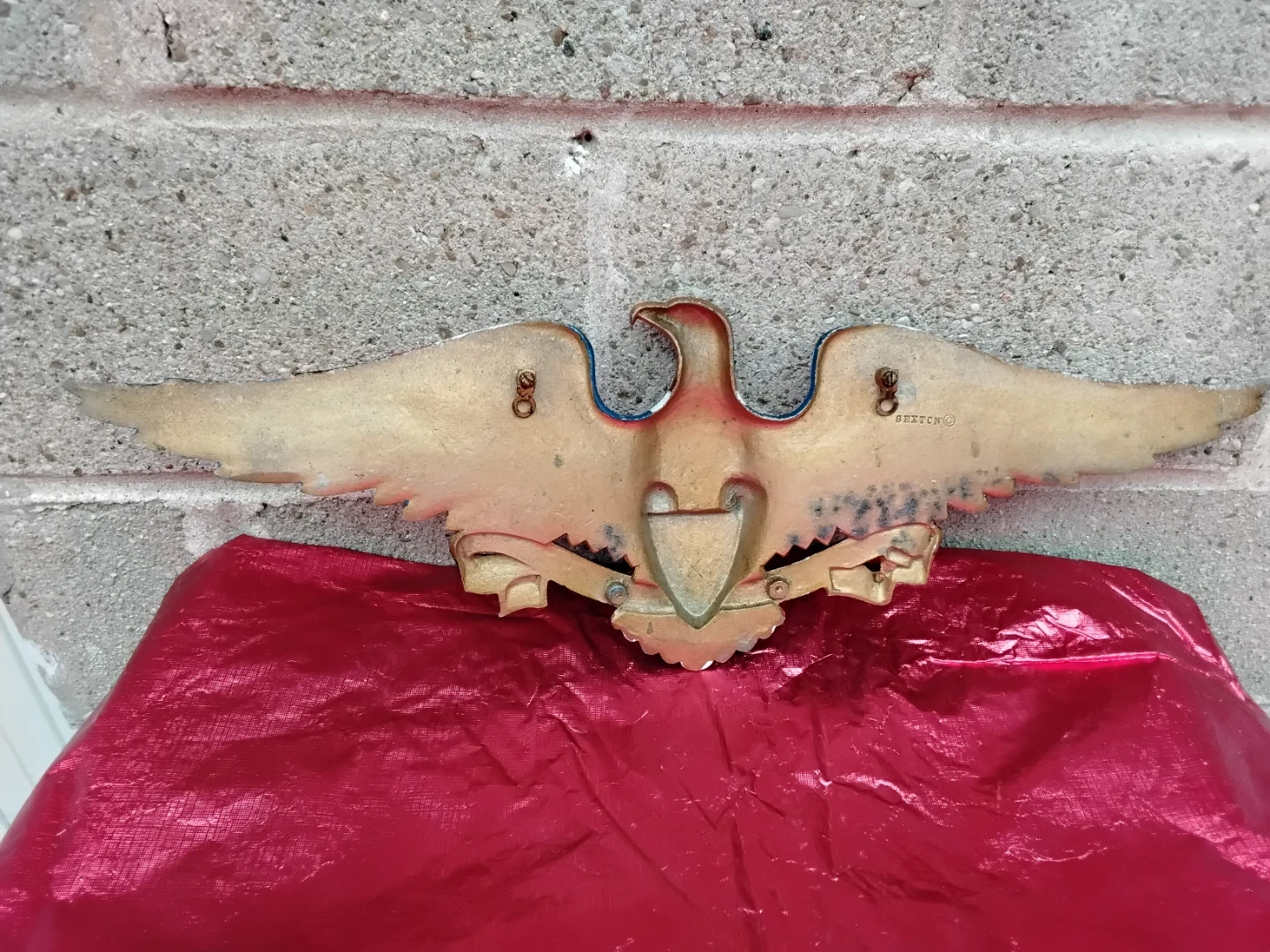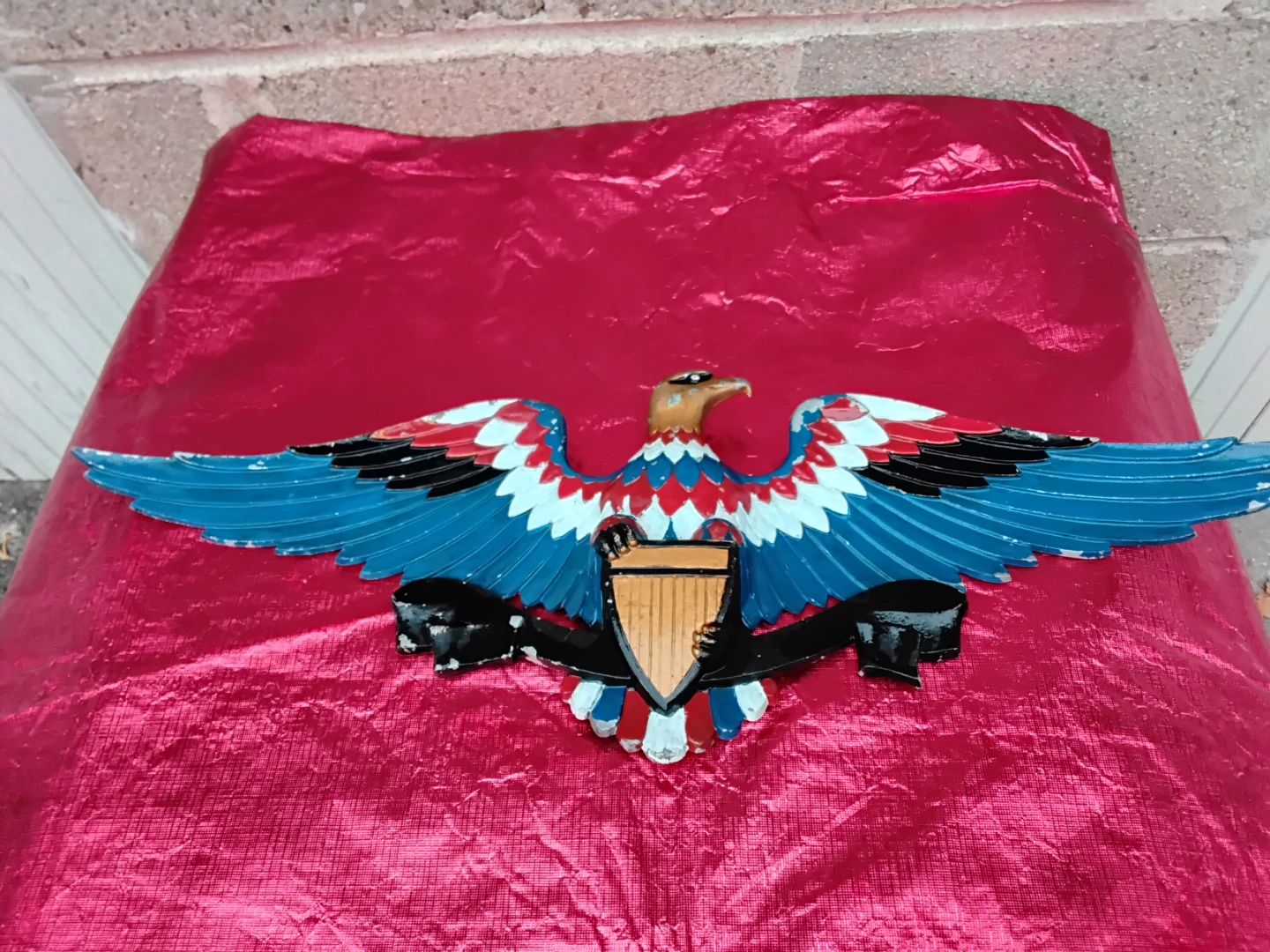 ✨️Selling a vintage Sexton metal eagle wall decoration! It's a really cool piece with a patriotic design. The eagle has red, white, and blue details, and it would look great in any room!