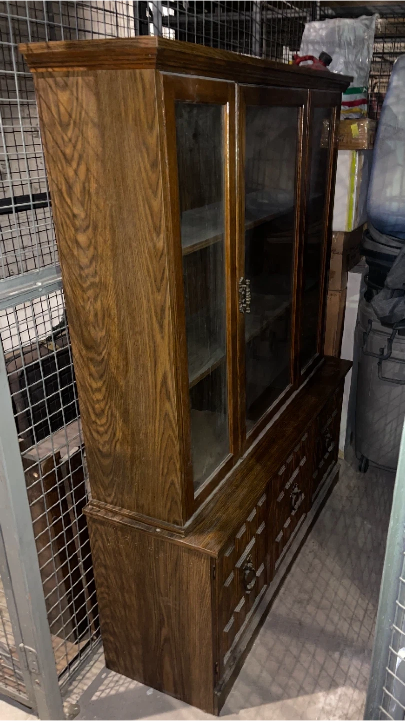Selling a dark wood china cabinet. It has a classic design and would be a great addition to any dining room or living room. It's in good condition and ready for a new home! Base is 26 inches high by 53 inches wide by 18” deep . Top is 44 inches high by 47 inches wide by 13 inches deep.