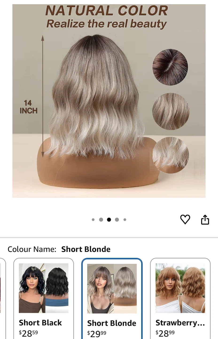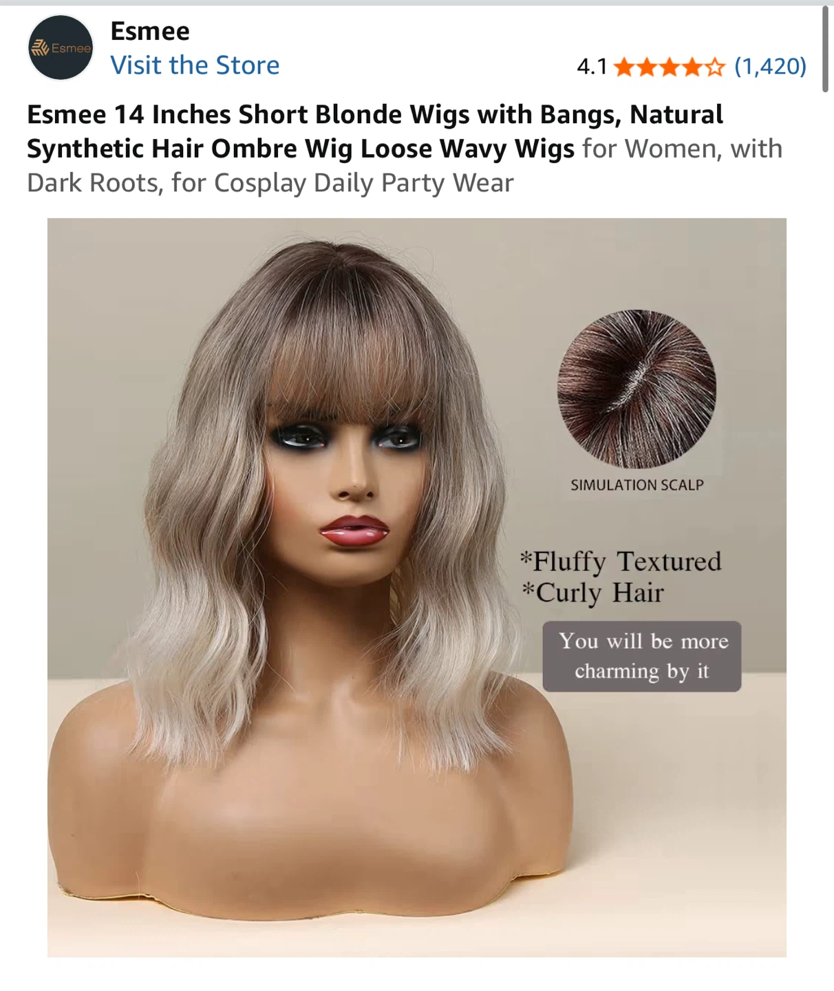 Selling a brand new Esmee 14 inch short blonde wig. It's a natural synthetic hair ombre wig with bangs, perfect for daily wear, parties, or cosplay! The wig features a loose wavy style and dark roots. Comes in the original OPEN box!