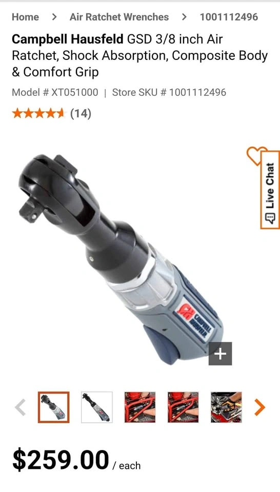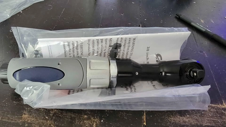 Open box Campbell Hausfeld XT051000 air ratchet. Got this item as part of my auction lot. The box is not in good shape but the tool itself doesn't look like it's ever been used. Please see attached photos. I have not tested it.