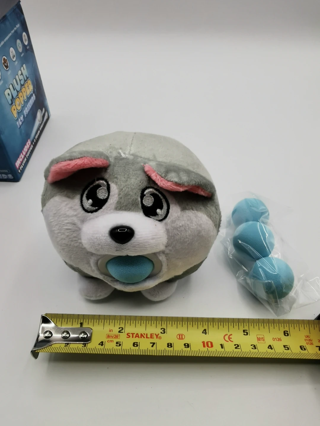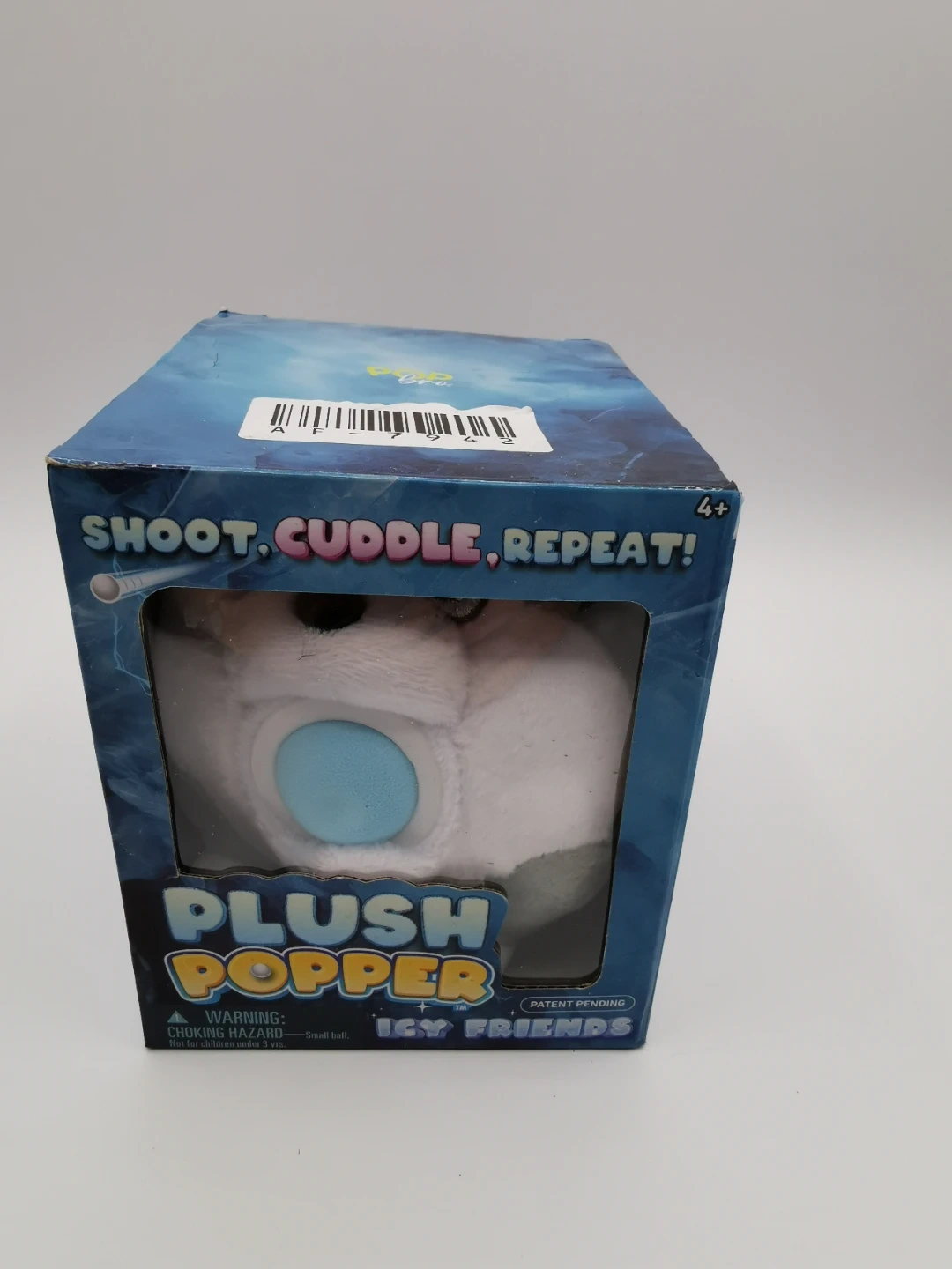 This is a Plush Popper Icy Friends Huski plush toy that shoots foam balls. This plush toy is new, includes the original box and 4 foam balls. It's a soft, cuddly toy that can also be used for target practice!