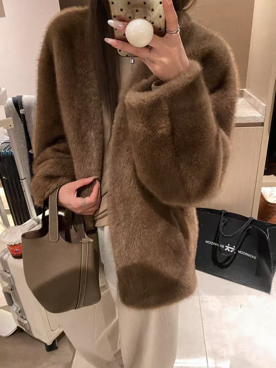 Luxurious Faux Fur Coat & Bucket Hat Set