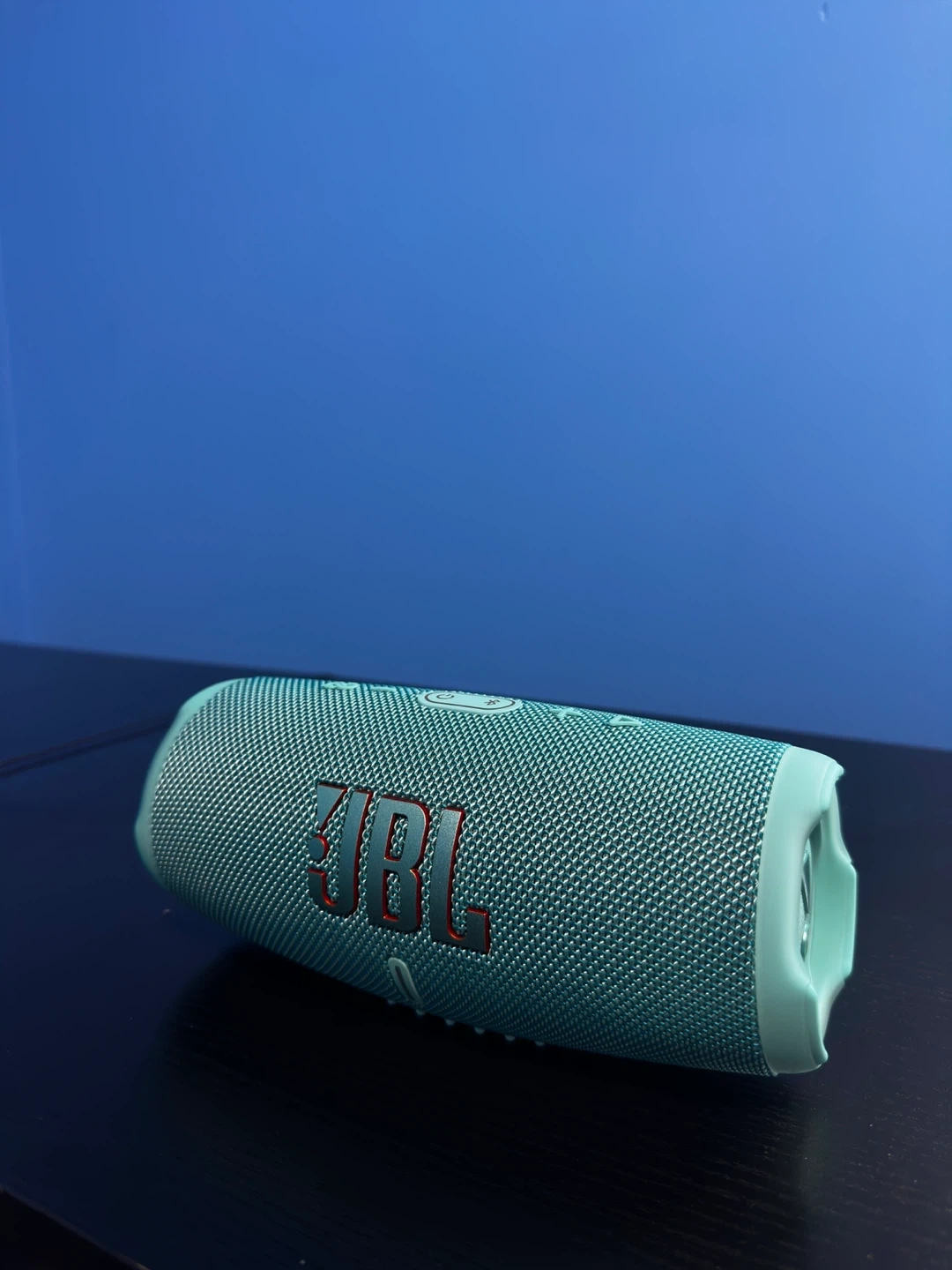 Selling a JBL Charge 5 portable Bluetooth speaker in teal. It's in brand new condition. This speaker is known for its powerful sound and long-lasting battery life, perfect for taking your music on the go!