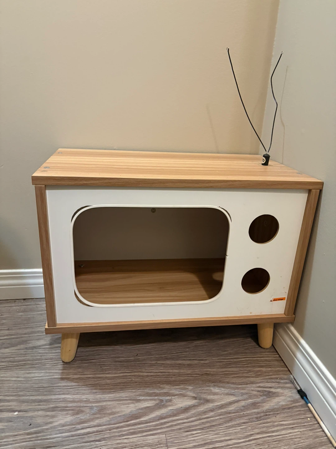 Selling a cute retro TV-shaped cat house! It's in great condition and provides a fun and cozy space for your feline friend to relax and play