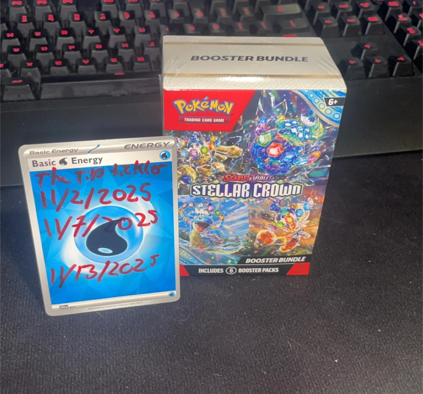 Selling a Pokémon Trading Card Game: Scarlet & Violet Stellar Crown Booster Bundle! It includes 6 booster packs. Perfect for any Pokémon card collector or player