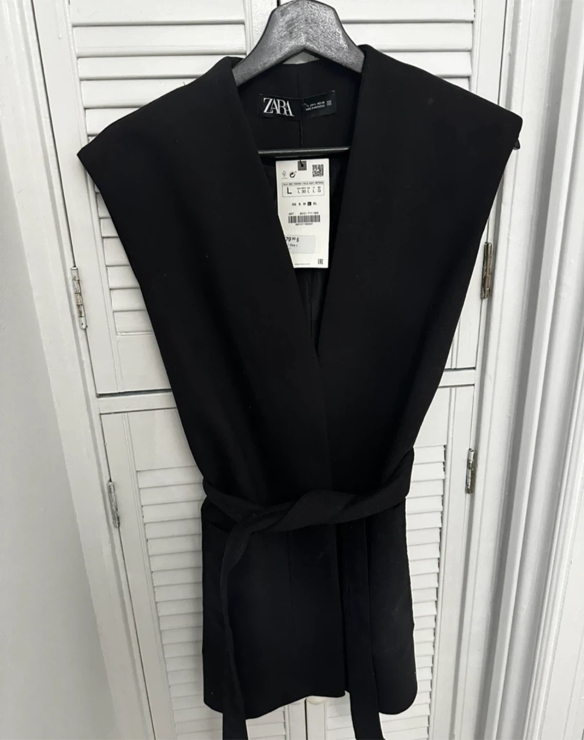 NEW Zara Black Sleeveless Belted Blazer - Size L