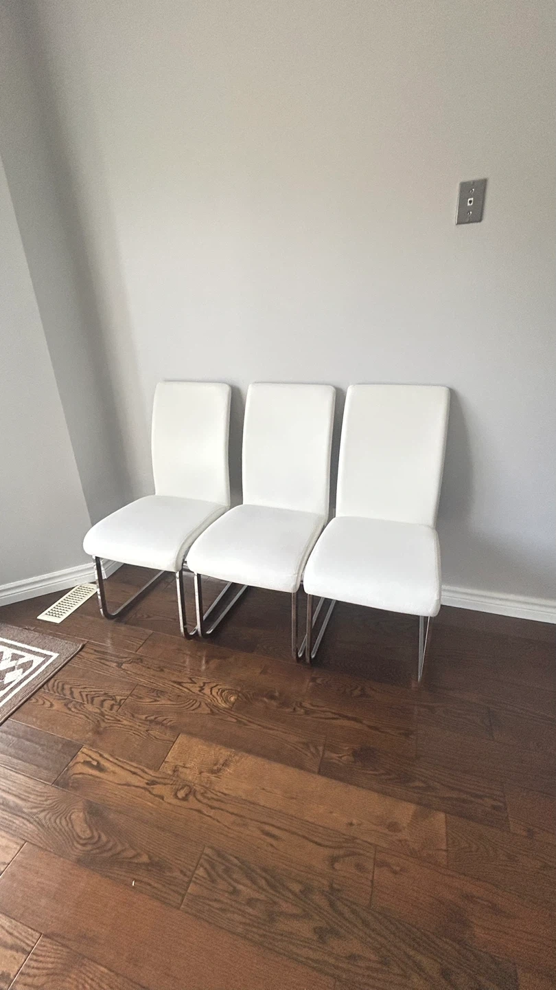 Buy & SellSet of 3 White Dining ChairsSet of 3 White Dining Chairs$116Selling a set of three dining chairs. They're white and would look great in any dining room or kitchen!ConditionLike new0 chats·0 favorites·27 viewsSELLERLbuelaAmberlea50 reviewsWHERE TO MEETCheck Location